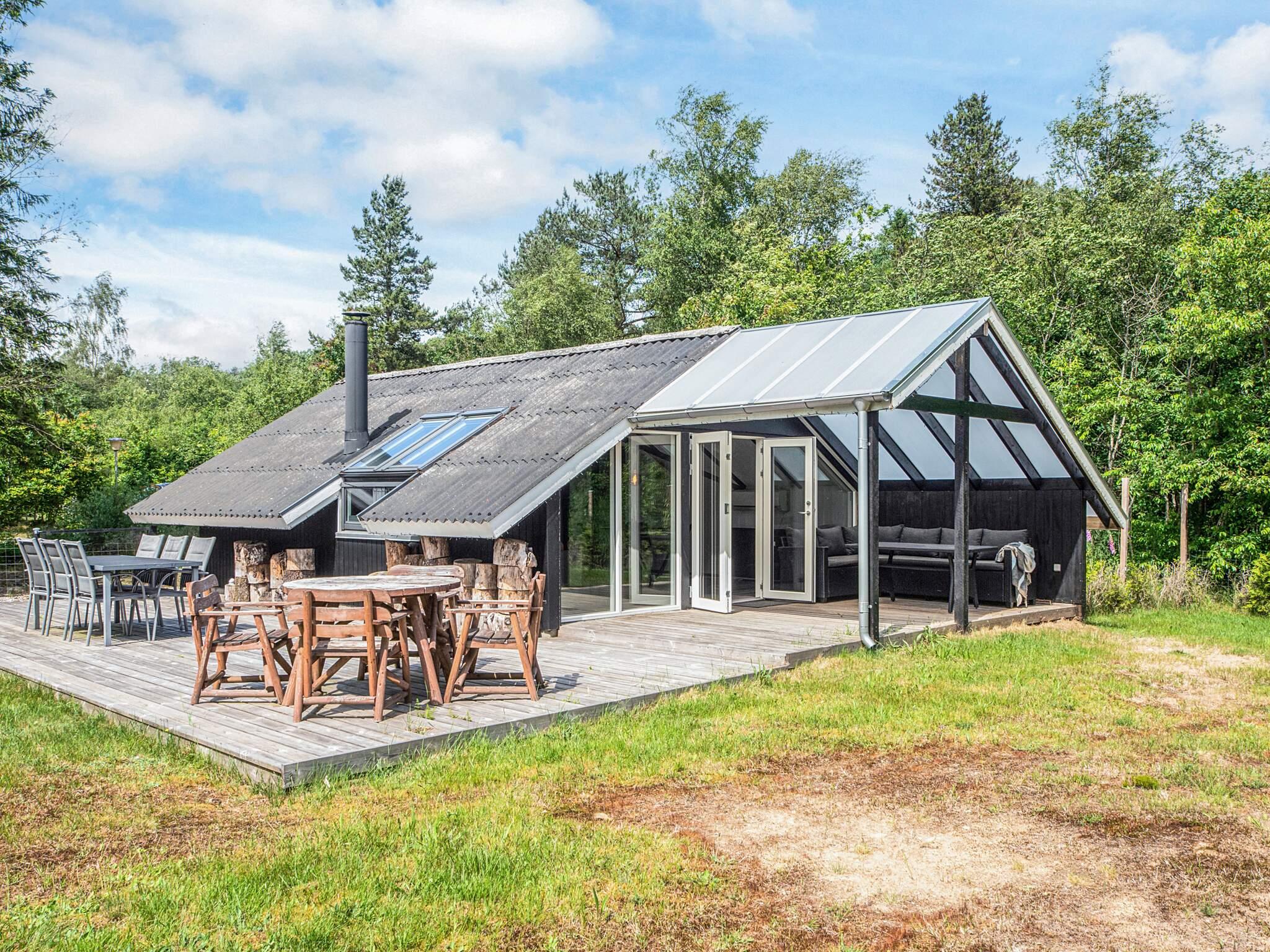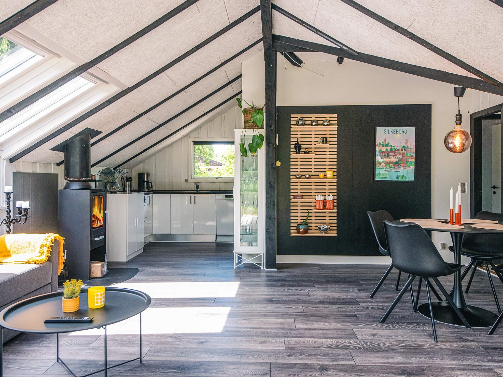 Nyistandsat sommerhus i rolige omgivelser med moderne køkken, brændeovn og stor terrasse – perfekt til afslapning og familietid.