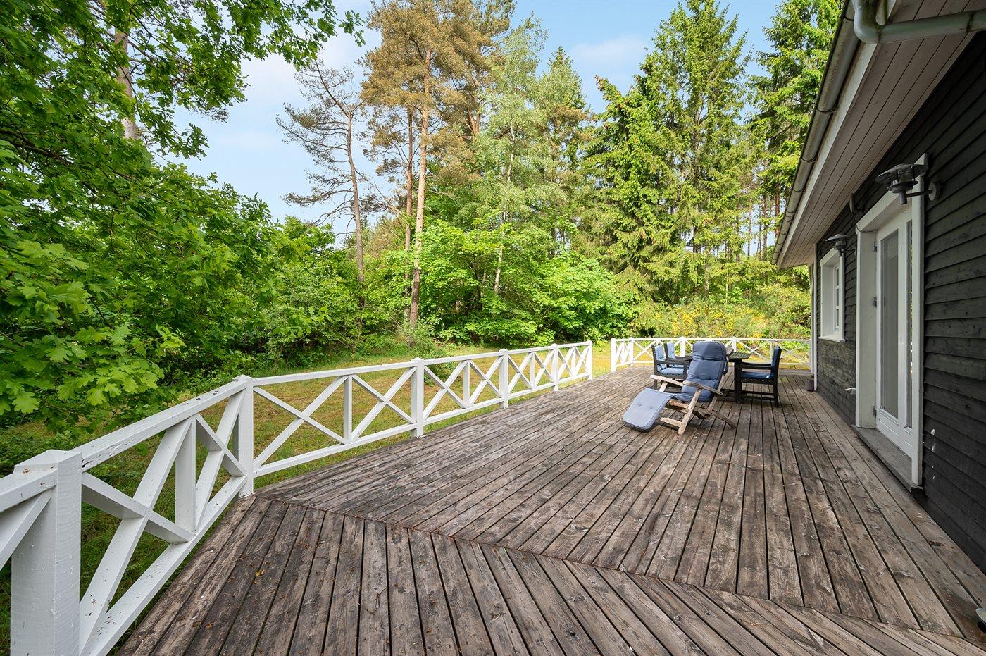 Ferieboligen er beliggende på en 2500 m² stor naturgrund. Der er en sø i en afstand af 5000 m. Nærmeste forretning er beliggende i en afstand af 3000 m. Til ferieboligen hører 100 m² terrasseareal. Desuden er der 12 m² overdækket terrasse med glastag, som desværre ikke kan holde tæt i regnvejr. Grill til rådighed. Der er garage til rådighed. Parkering ved ferieboligen.