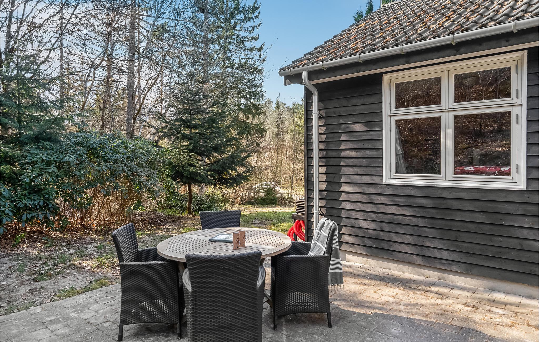Der er træer hele vejen rundt, og grunden består af en skrænt, der fungerer dejligt afskærmende. Her kan I nyde freden og roen og tilrettelægge dagene, lige som I vil.