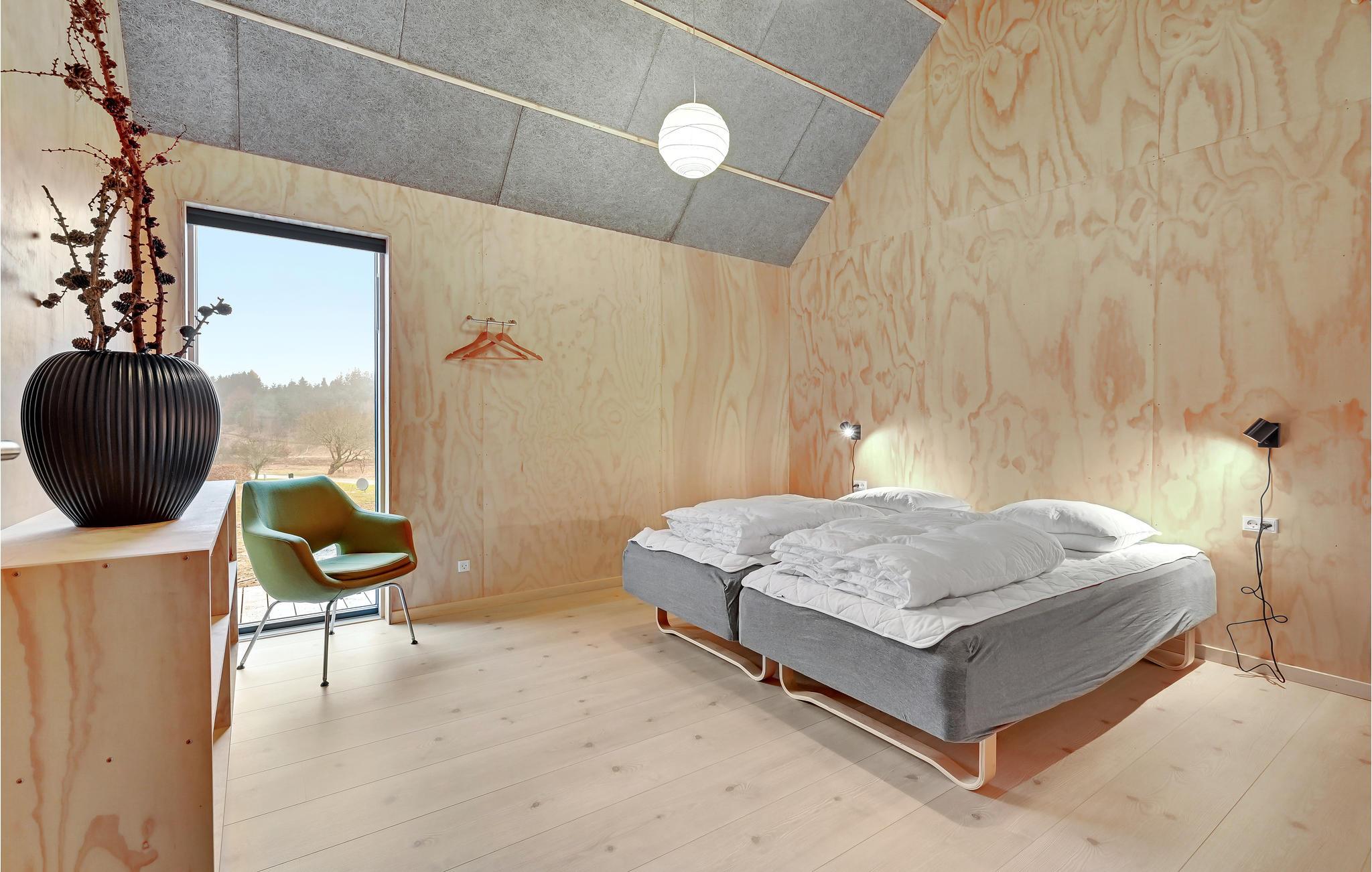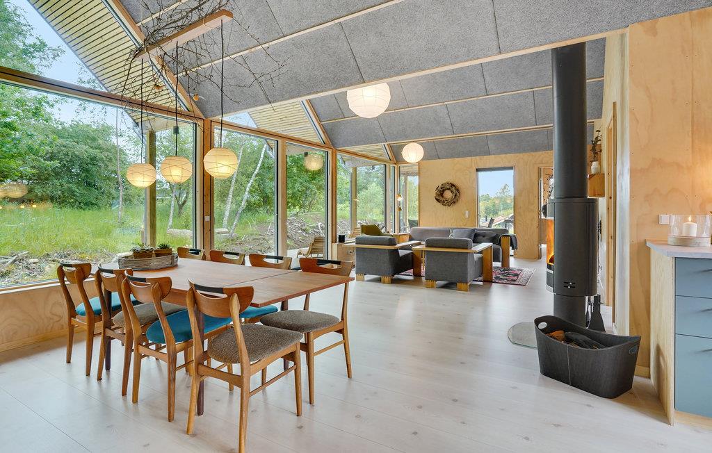 Dette attraktive, arkitekttegnede feriehus venter sine gæster i et smukt naturområde kun 10 km fra Silkeborg. Der kommer masser af lys ind i værelserne gennem den store vinduesfront, og samtidig har I en vidunderlig udsigt over omgivelserne. Med 3 soveværelser kan huset rumme 6 personer. brændeovnen i stuen giver ekstra hygge.