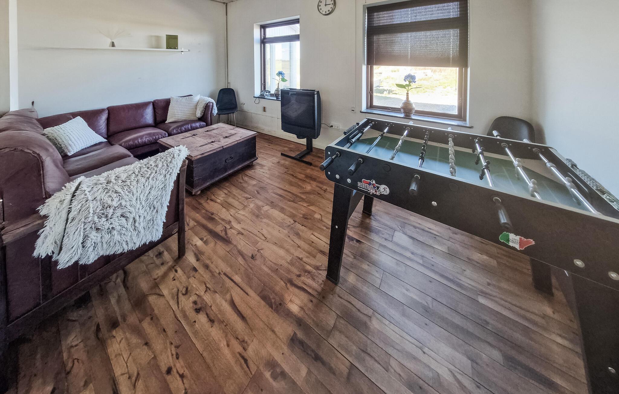 Dette rummelige hus danner den perfekte ramme om en uforglemmelig ferie for flere familier eller en stor vennegruppe. Læn jer tilbage i den hyggelige sofagruppe, eller nyd behagelige aftener med fælles måltider ved det lange spisebord. Dyst i billard, på PlayStation eller Nintendo Wii. Saunaens beroligende varme byder på rolige øjeblikke.