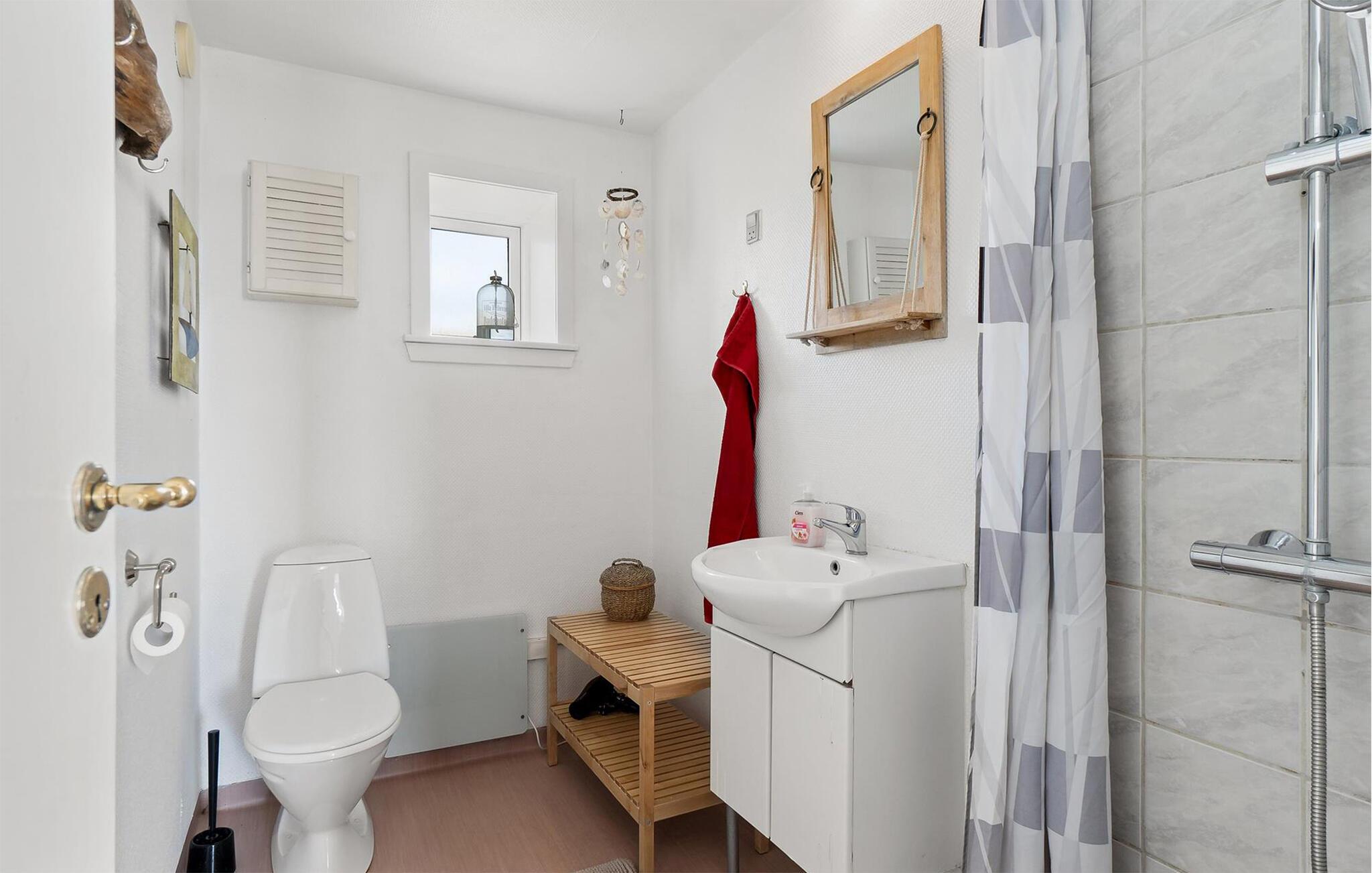 Velkommen til dette lækre sommerhus giver jer den perfekte oase til en afslappende ferie. Den fredfyldte beliggenhed lige ud til stranden skaber de optimale betingelser for at slappe af med familien. Lad blikket vandre over vandet og mærk, hvordan roen automatisk sænker sig. Opholdsstuen er et skønt sted at samles, for her kan I slå jer ned i de bløde sofaer og se en god film, mens ilden buldrer i brændeovnen. Find sammen om spisebordet og nyd måltiderne, som hver gang ledsages af den fantastiske udsigt.