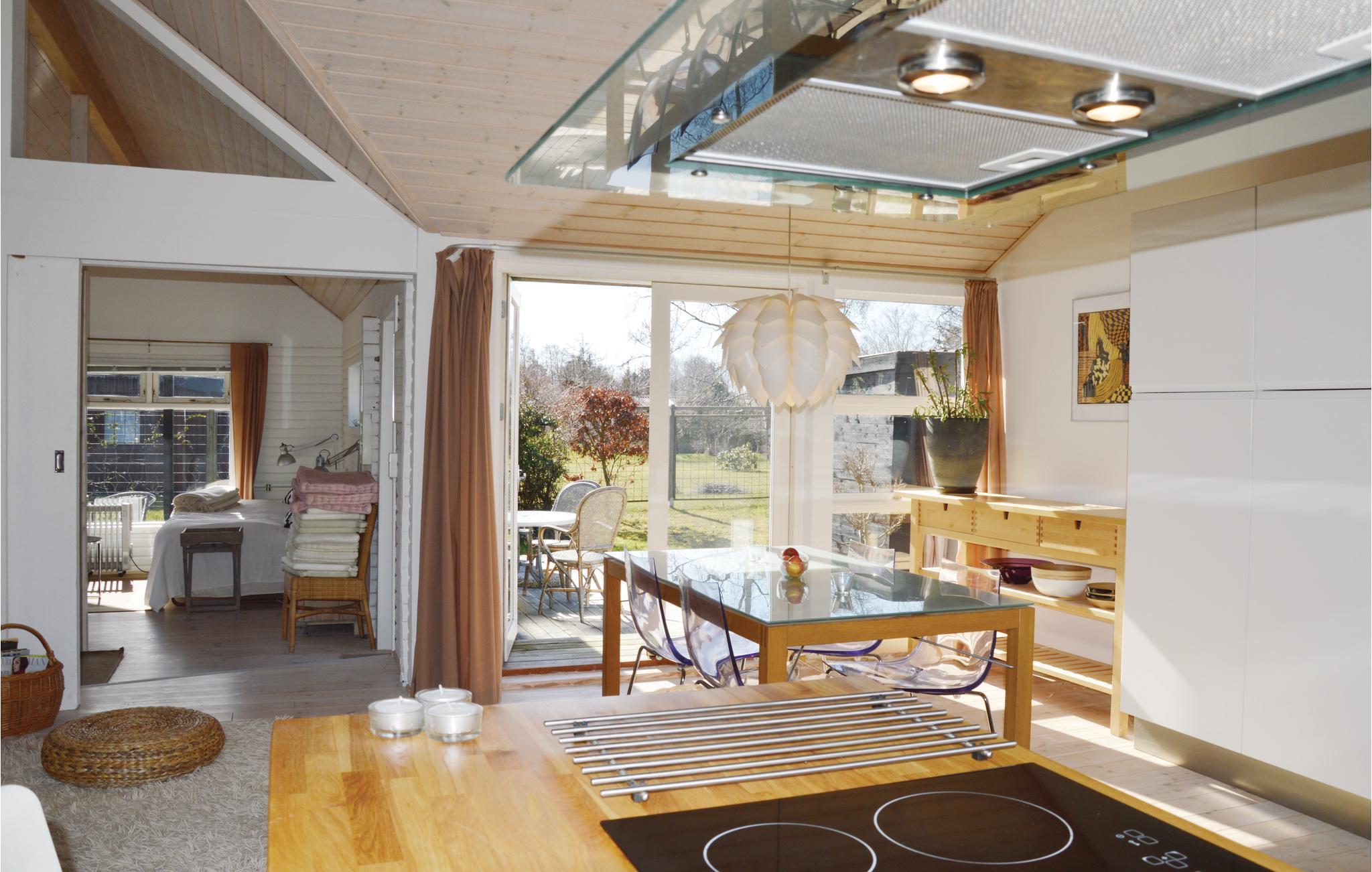 Charmerende feriehus med åbent køkken i kombination med spisestue/stue med brændeovn, 2 gode værelser, samt yderligere overnatning i stue/værelse med skydedør her fra adgang til skøn åben terrasse, badeværelse med 2 personers spa samt brus. Der er flere steder fra huset udgang til såvel åben som overdækket terrasser, så her er rig mulghed for at finde læ eller nyde solen i fulde drag hele dagen. Børnene vil elske at riste skumfiduser og høre røverhistorier når der hygges om bålpladsen. Huset ligger på Sj. Odde som er en halvø mellem Kattegat og Sejerø Bugten. Huset ligger kun 600 meter fra kystlinjen, hvor lyset på himlen har sin helt egen karakter. Naturen er flot og præget af istidens påvirkning af landskabet. For lystfiskere er området et eldorado, men der er også kort afstand til Havnebyen, Odsherreds eneste rigtige fiskerihavn, hvor I kan købe frisk og nyrøget fisk på havnen. Der er 15 min. kørsel til Sommerland Sjælland med masser af forlystelser for børn og barnlige sjæle. Tager I helt ud på Gniben, det yderste af Sjællands Odde kan I fiske og nu gå langs stranden hele vejen rundt om Odden. Det er også muligt at spadsere på Hærens Artilleriskoles område. Tæt på tre golfbaner, Odsherred Zoo i Asnæs, Dragsholm Slot fra 1200-tallet, hvor det hvide spøgelse efter sigende skulle husere, slottet er unikt og naturskønt beliggende ved Nekselø bugten, hvor man også kan få en kulinarisk oplevelse med lokale råvarer. Et besøg værd er også Nykøbing Sjælland by som har talrige indkøbsmuligheder med flere supermarkeder og en hyggelig gågade med specialforretninger og caféer, eller tag til Rørvig og nyd stemningen på havnen, hvor der kan købes og nydes friskfangede og nyrøgede fisk hver dag, mens børnene fanger krabber fra molen.