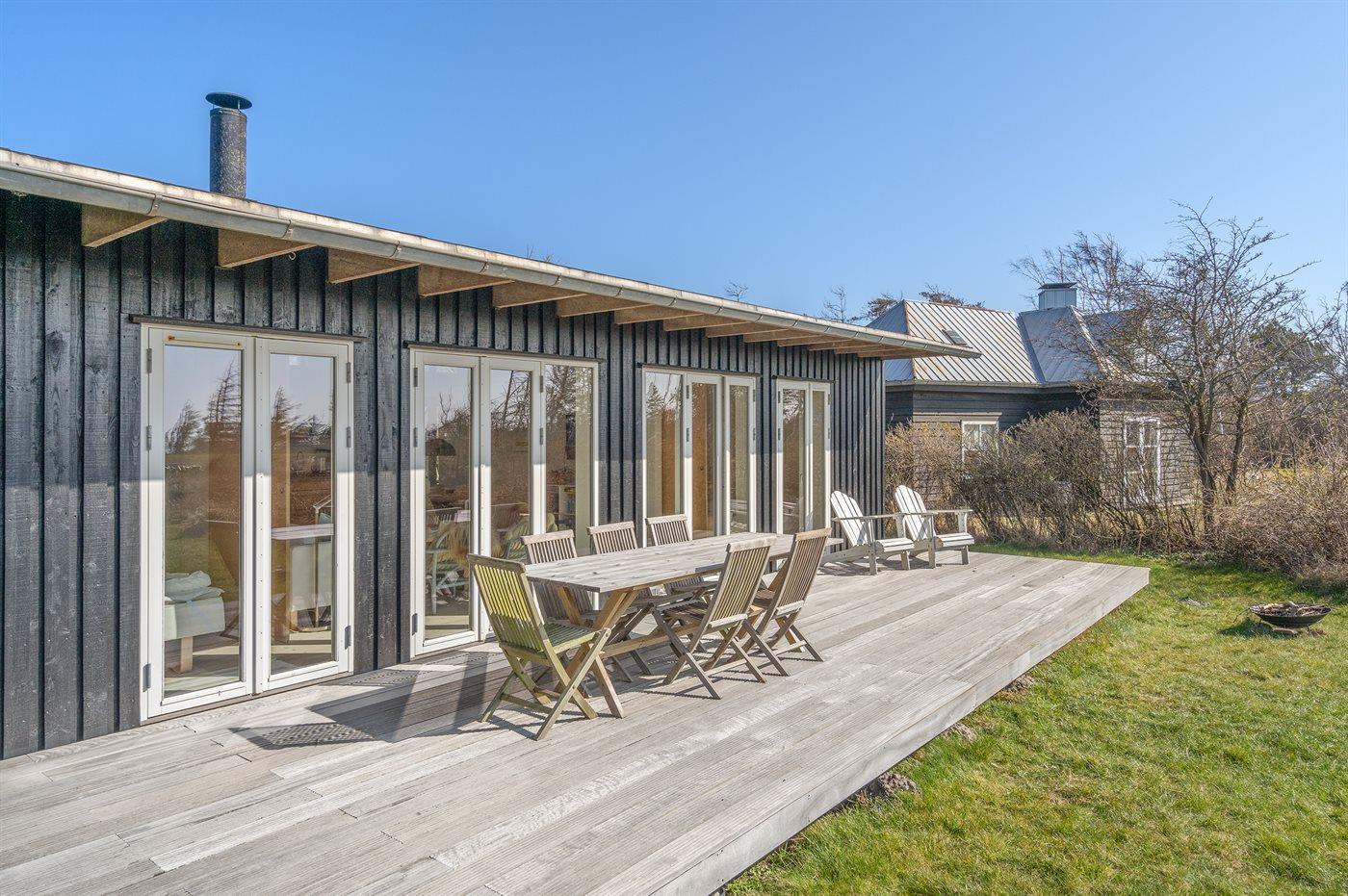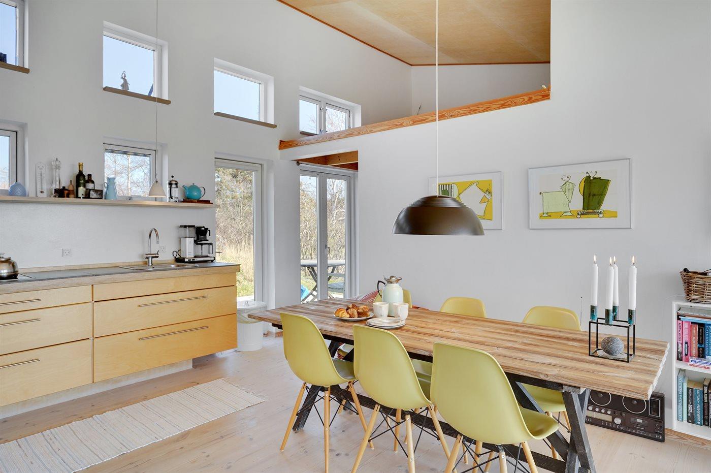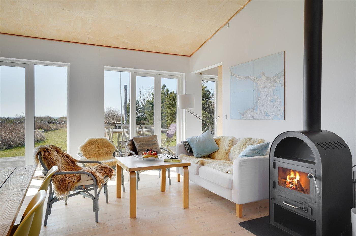 Sommerhuset ligger på en naturskøn grund med hyggelige kroge, hvor I kan nyde naturen, og være helt tæt på solnedgangen. De store vinduespartier fra gulv til loft giver en fantastisk udsigt over vandet, og direkte adgang til stranden. Vinduespartierne lader dagslyset strømme ind og skaber en særlig forbindelse mellem ude og inde.