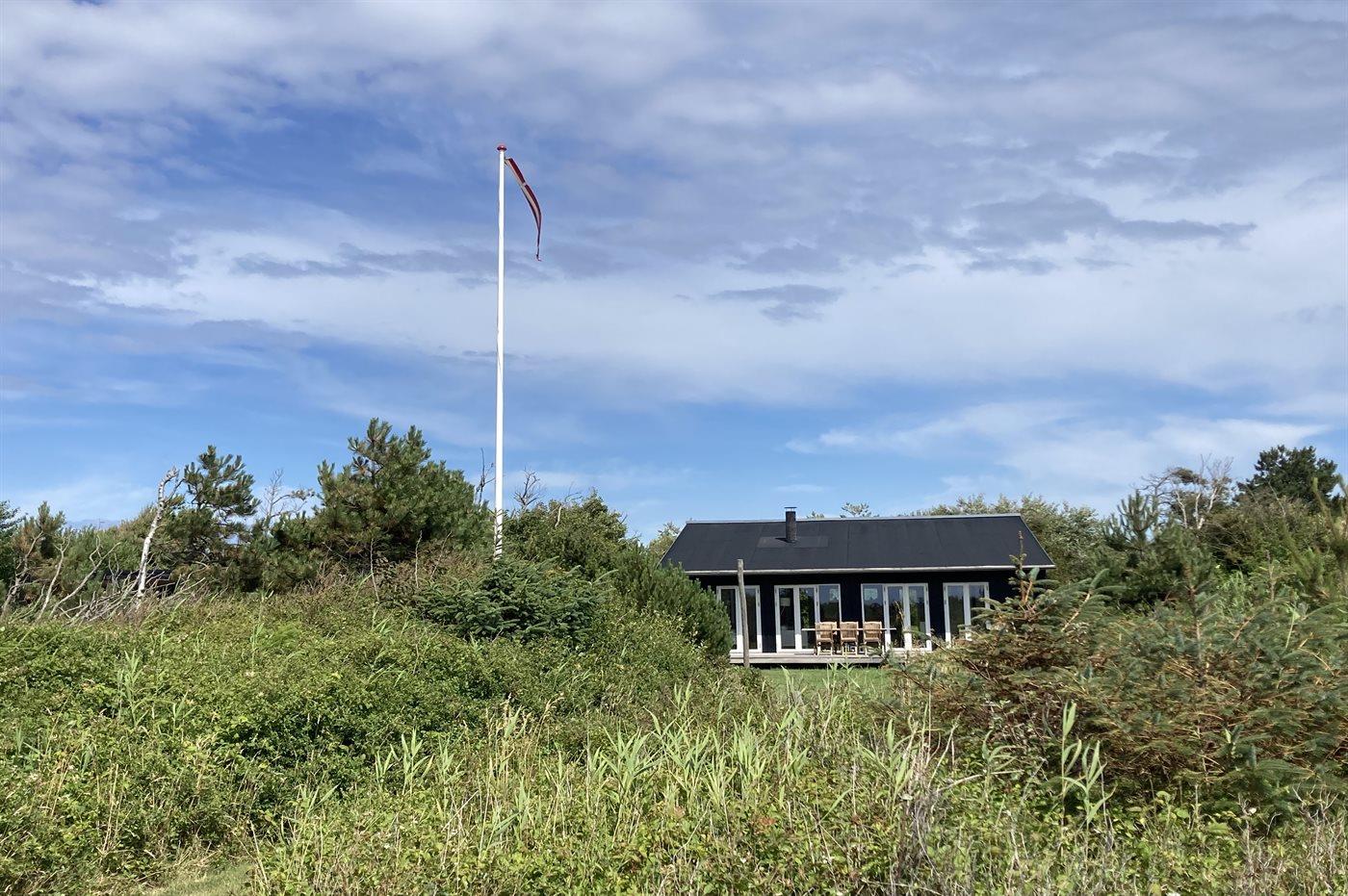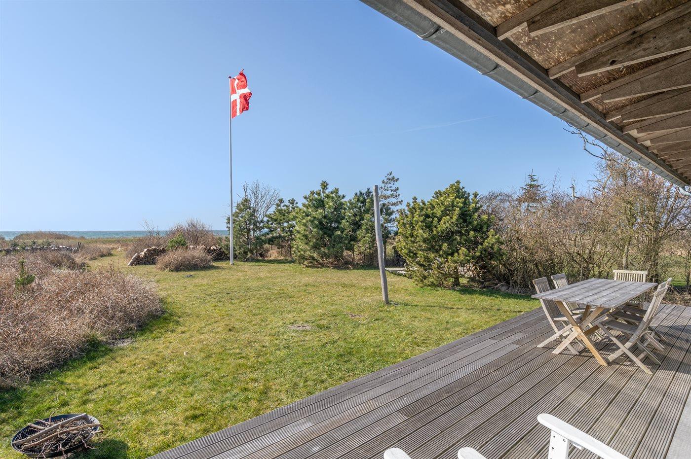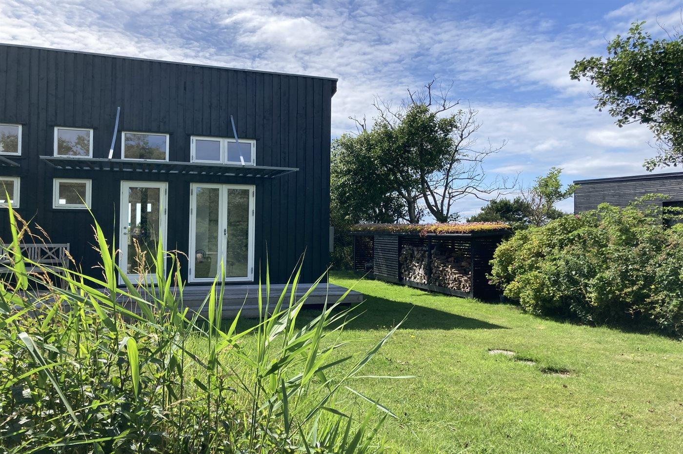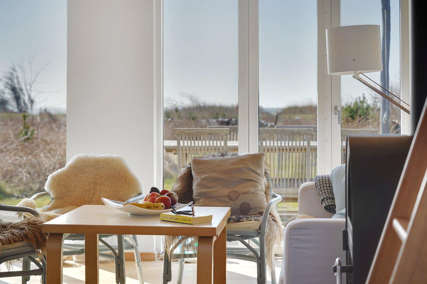 Sommerhuset ligger på en naturskøn grund med hyggelige kroge, hvor I kan nyde naturen, og være helt tæt på solnedgangen. De store vinduespartier fra gulv til loft giver en fantastisk udsigt over vandet, og direkte adgang til stranden. Vinduespartierne lader dagslyset strømme ind og skaber en særlig forbindelse mellem ude og inde.