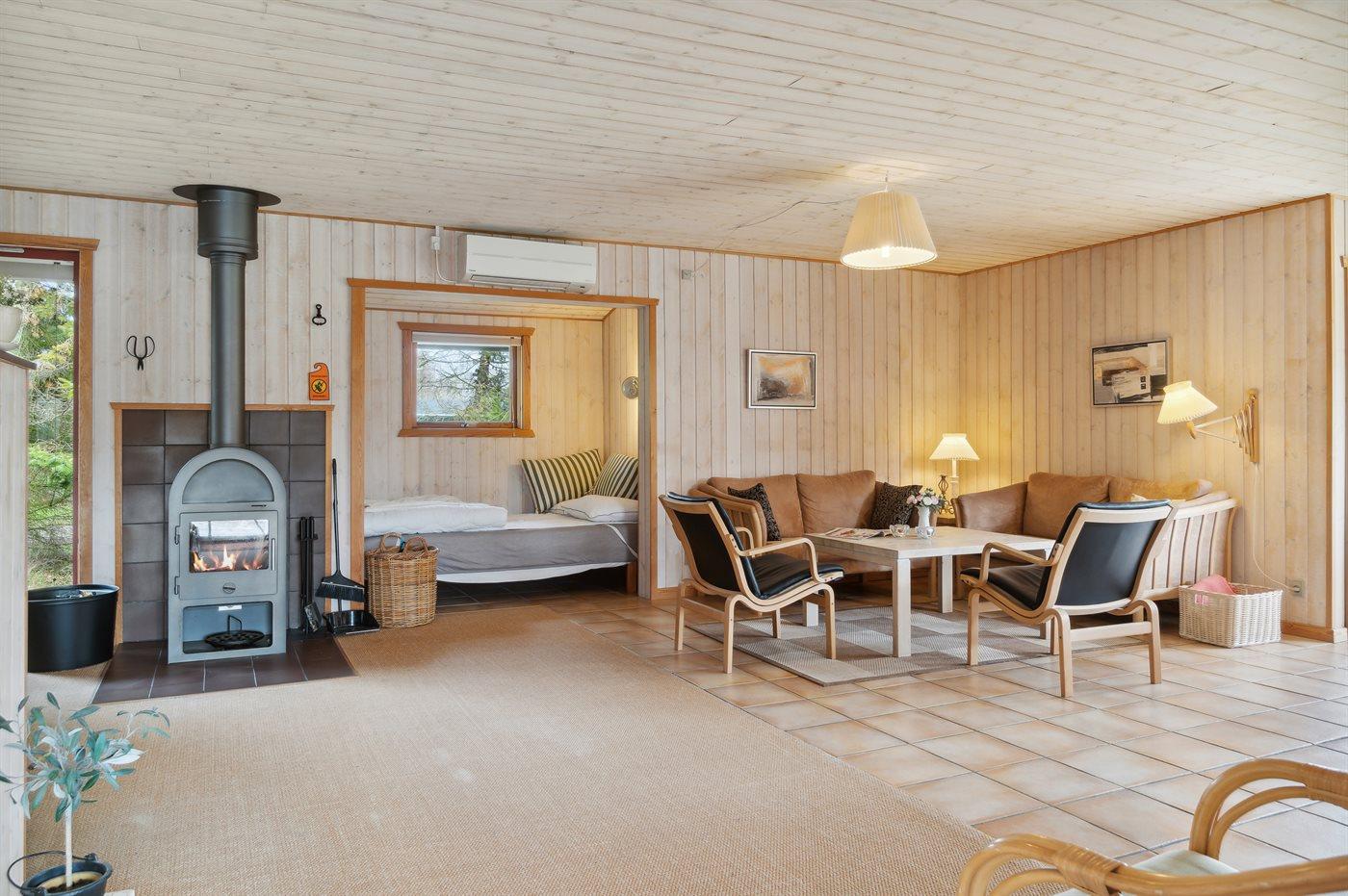 Der er i alt 3 soveværelser. Sovepladserne fordeler sig på: 2 sovepladser i dobbeltseng. 2 sovepladser i enkeltsenge. 2 sovepladser i alkove. 2 af disse sovepladser befinder sig i stuen.