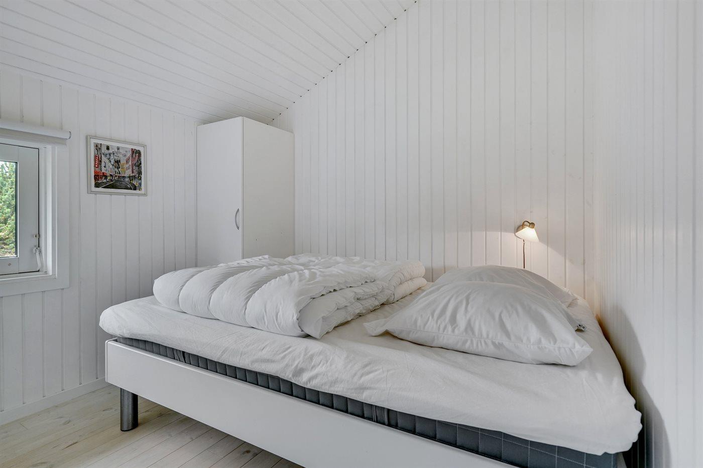Der er i alt 3 soveværelser. Sovepladserne fordeler sig på: 4 sovepladser i dobbeltsenge. 2 sovepladser i enkeltsenge.