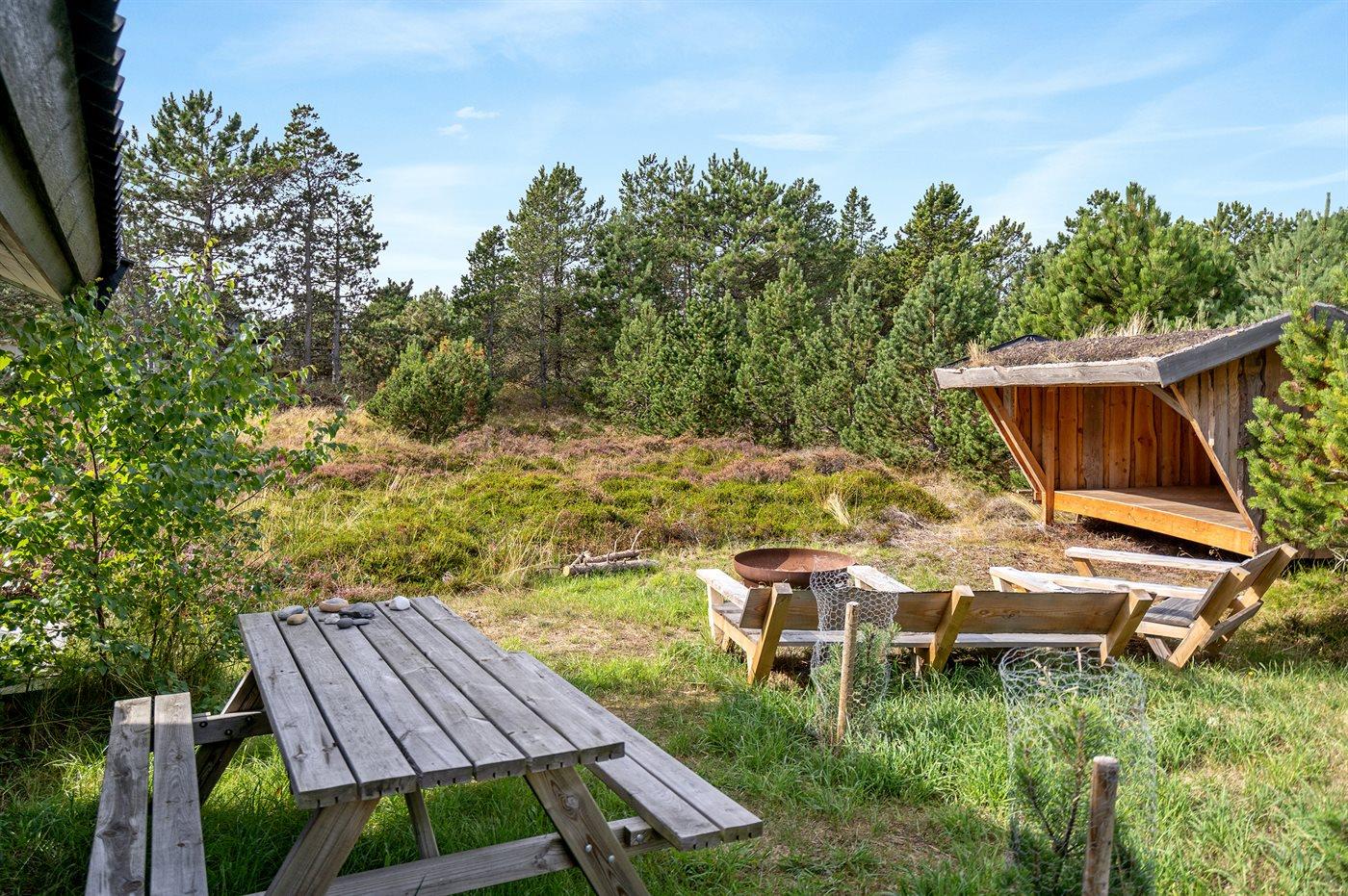 Ferieboligen er beliggende på en 1835 m² stor naturgrund. Der er 400 m til havet. Nærmeste forretning er beliggende i en afstand af 3000 m. Til ferieboligen hører 60 m² terrasseareal. Sandkasse. Shelter. Grill til rådighed. Parkering ved ferieboligen.