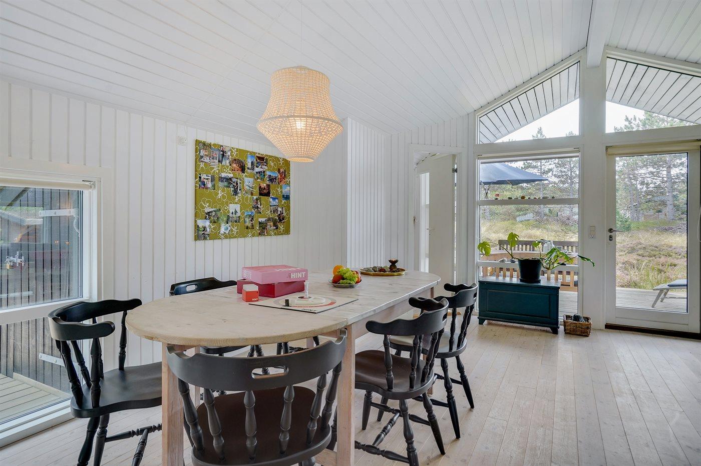 Køkkenet er udstyret med 1 køleskab. Der er 4 keramiske kogeplader, varmluftovn samt opvaskemaskine.