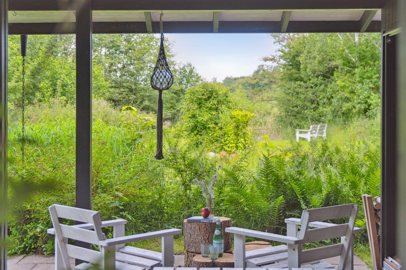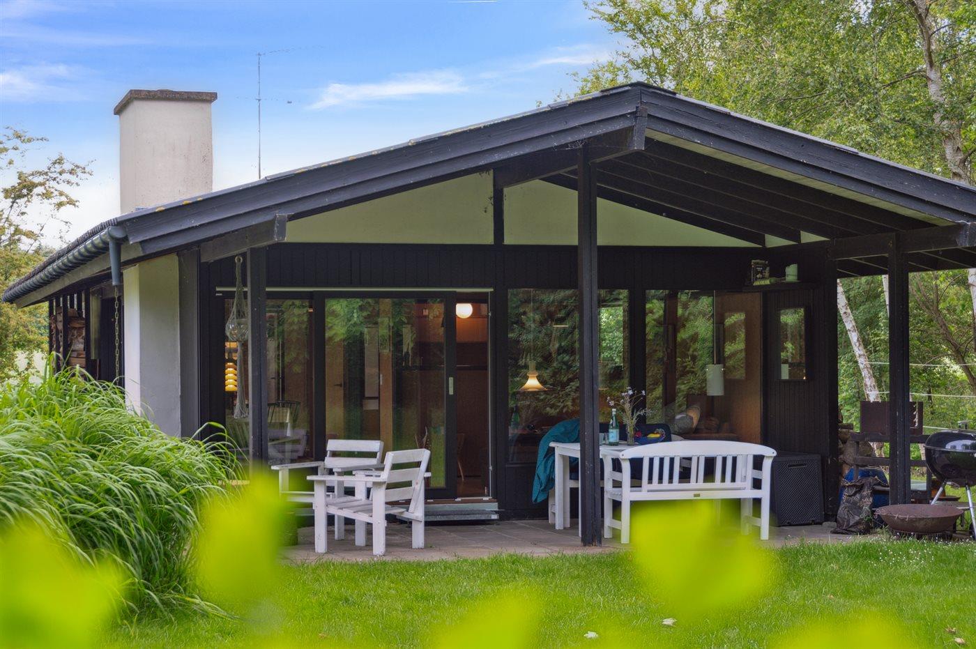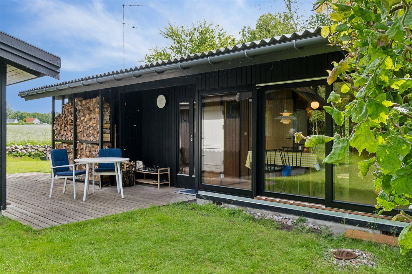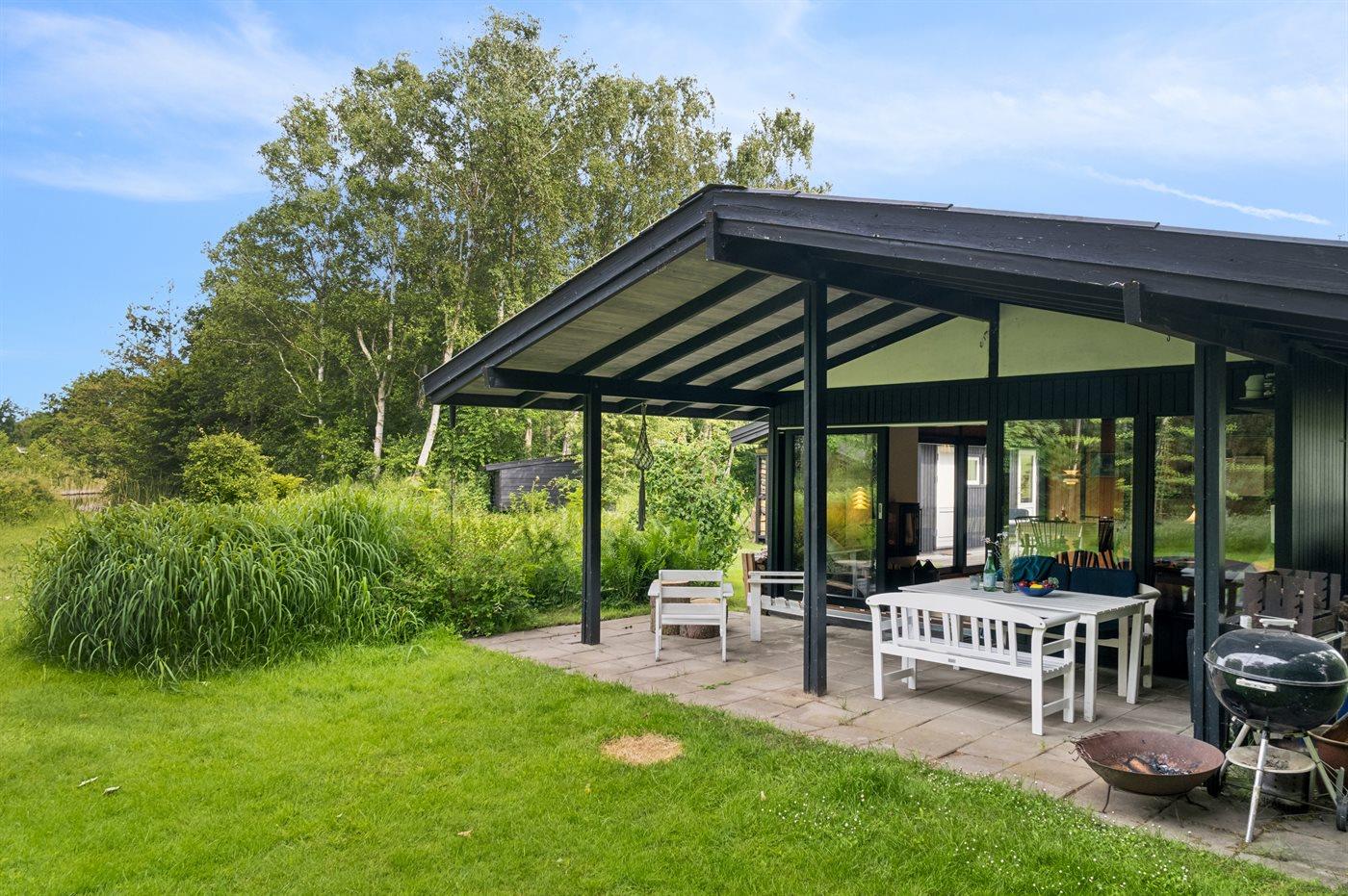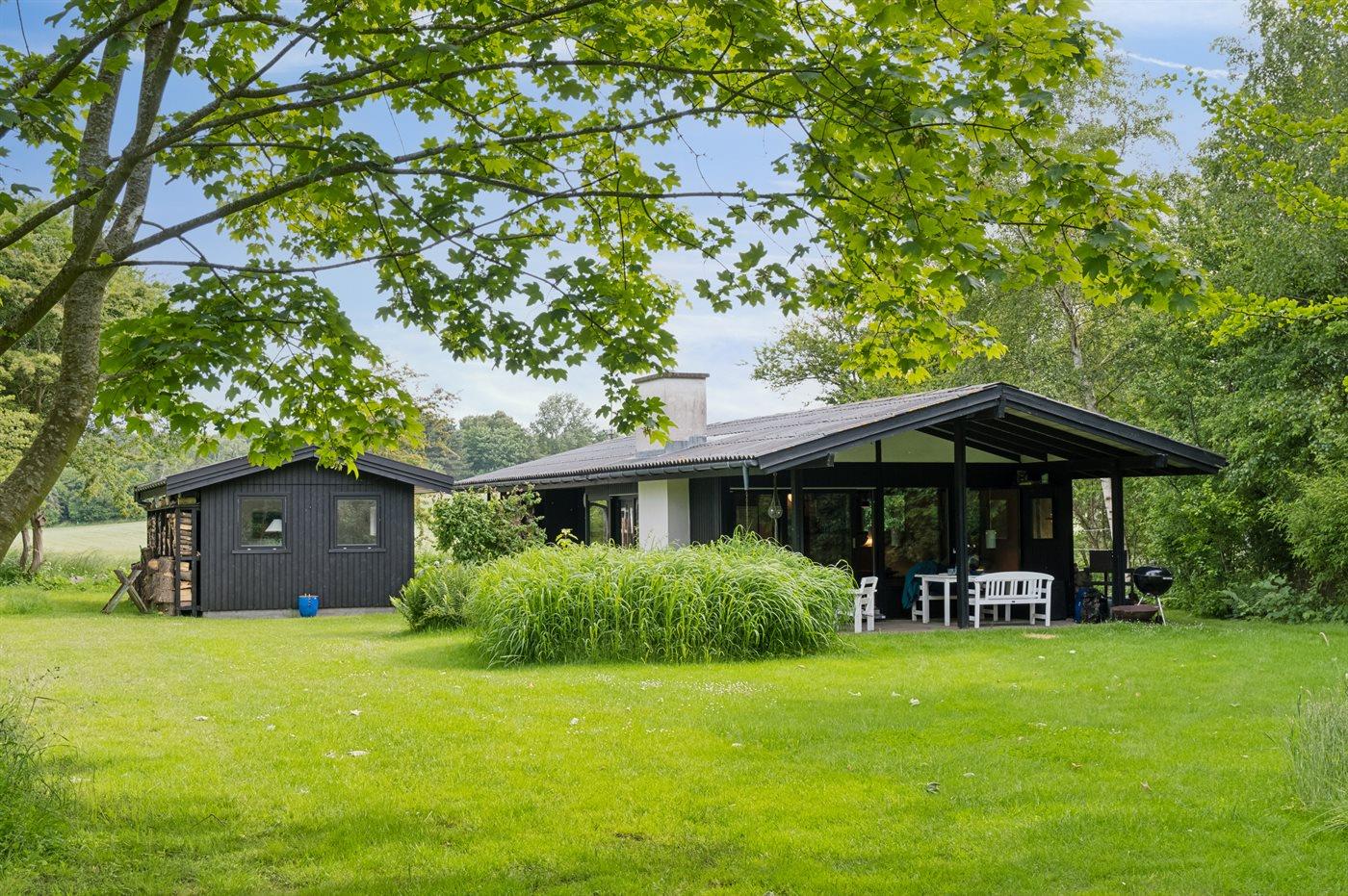 Dette sommerhus ligger tilbagetrukket i rolige og ugenerte omgivelser ud til åbne marker og med en lille sø som nabo. Der er et rigt dyreliv på grunden. Huset er velholdt, men enkelt og traditionelt. Der er to gode terrasser, hvor den ene er overdækket. På grunden med græsplæne er der rig mulighed for leg og der findes shelter og boule-/petanquebane.