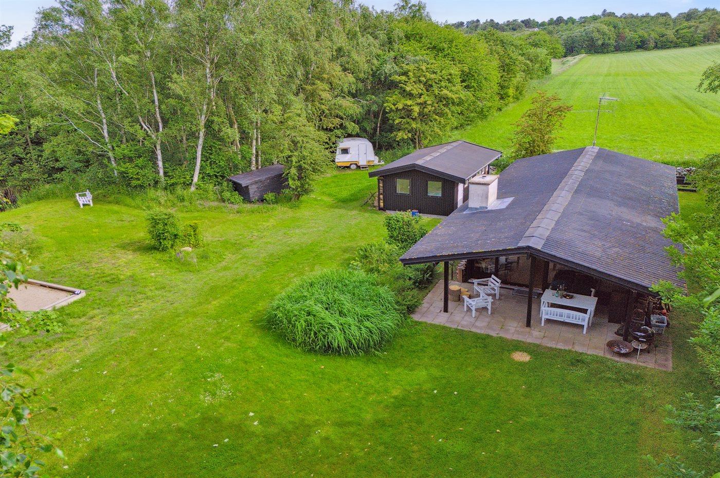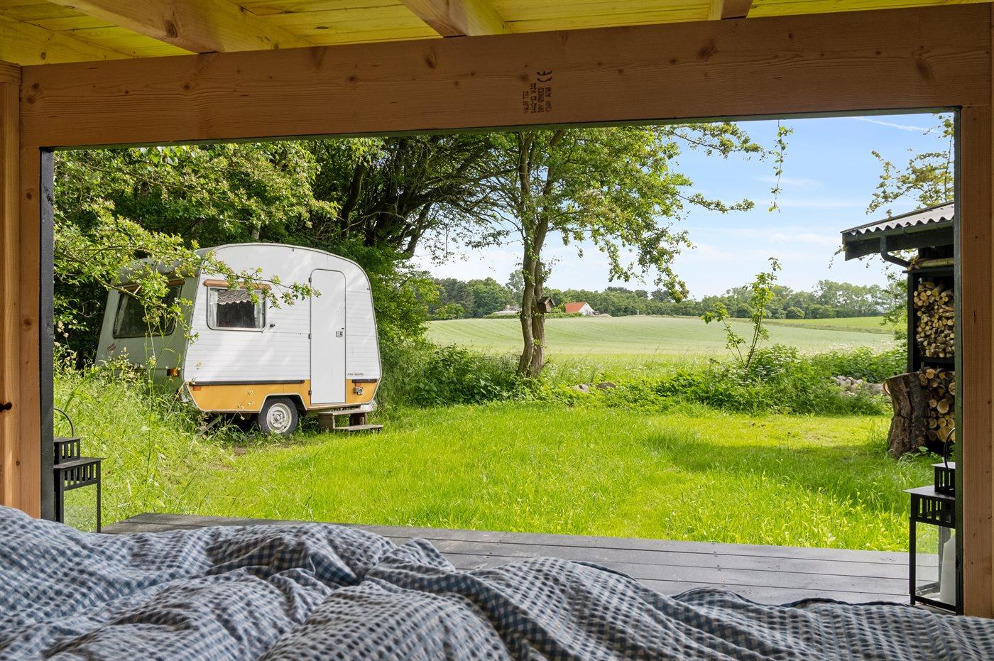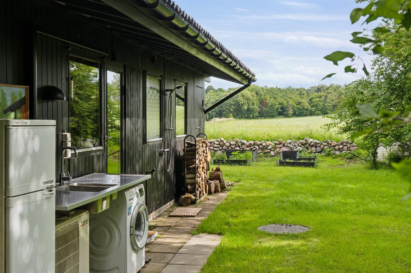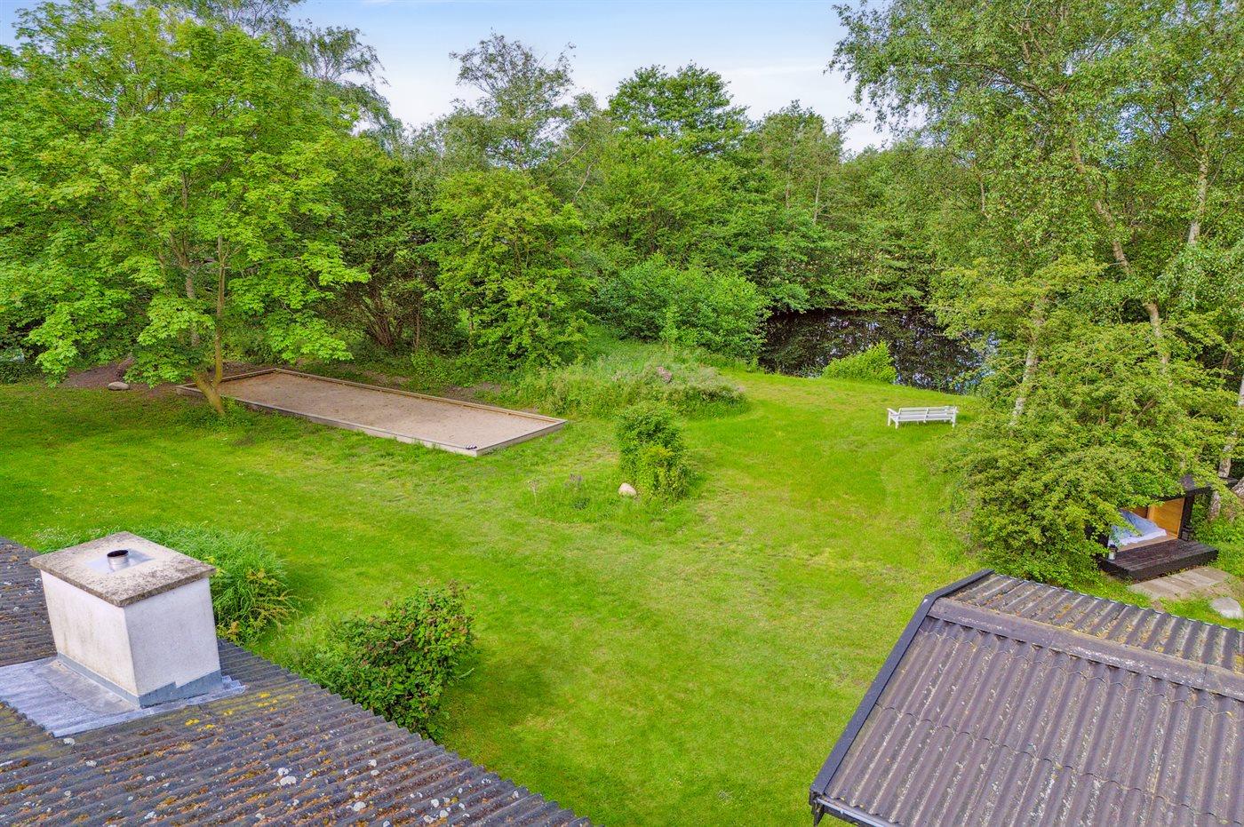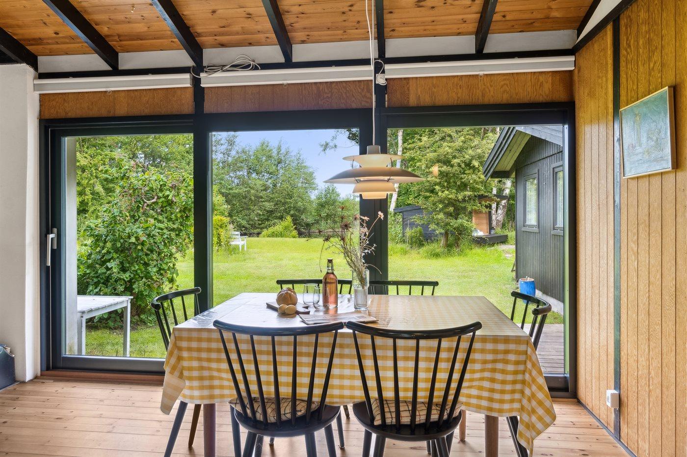 Dette sommerhus ligger tilbagetrukket i rolige og ugenerte omgivelser ud til åbne marker og med en lille sø som nabo. Der er et rigt dyreliv på grunden. Huset er velholdt, men enkelt og traditionelt. Der er to gode terrasser, hvor den ene er overdækket. På grunden med græsplæne er der rig mulighed for leg og der findes shelter og boule-/petanquebane.