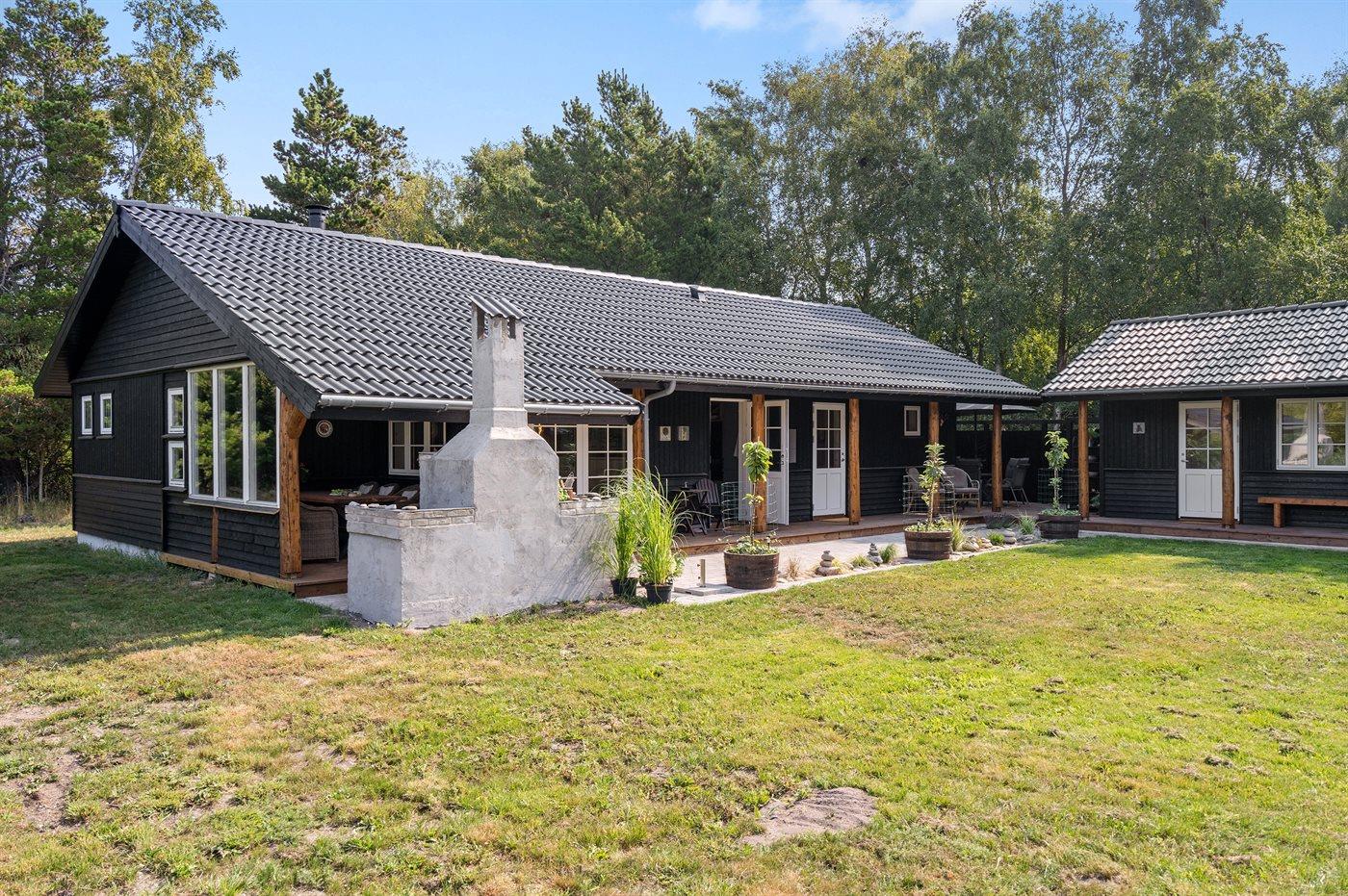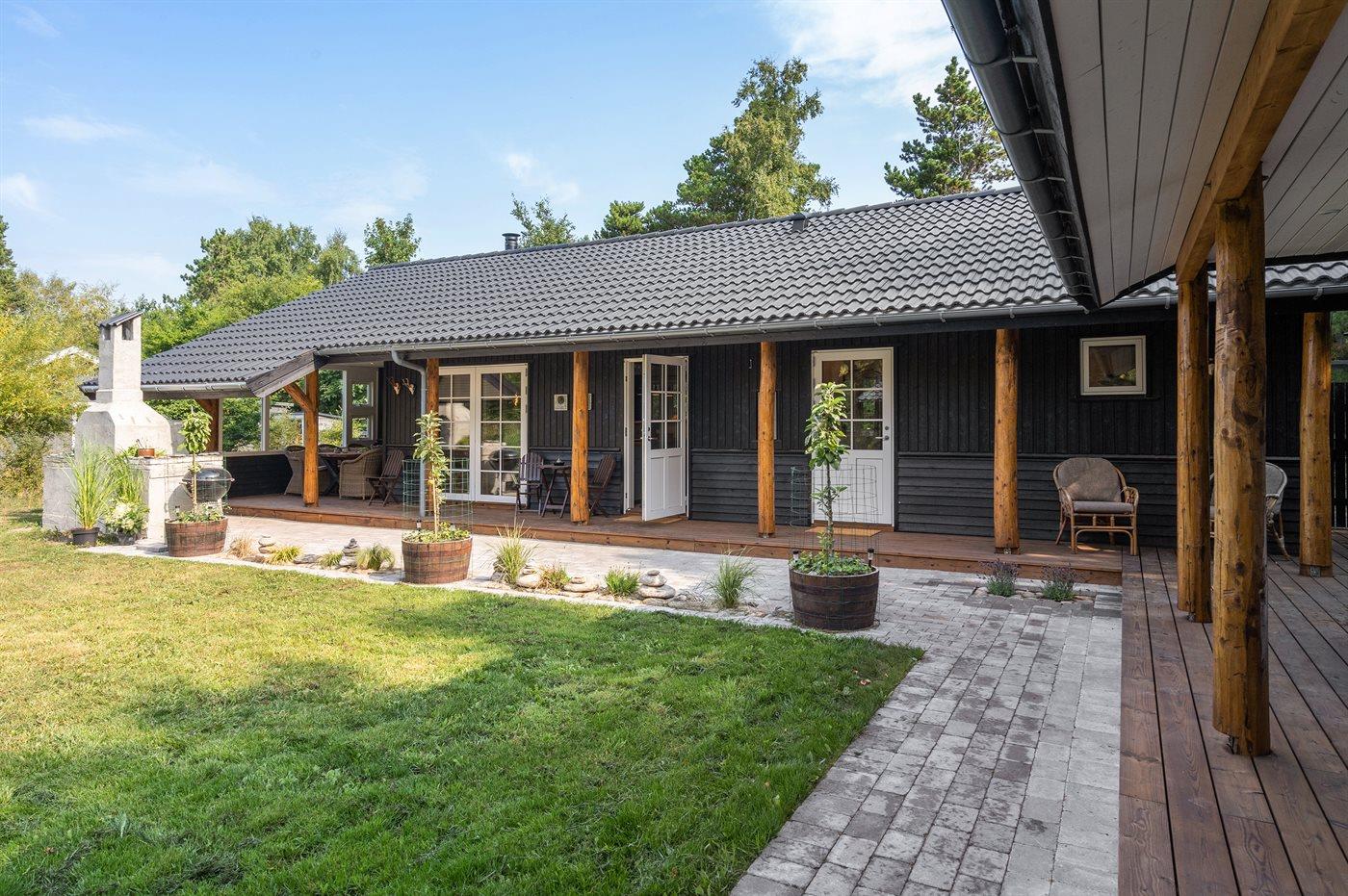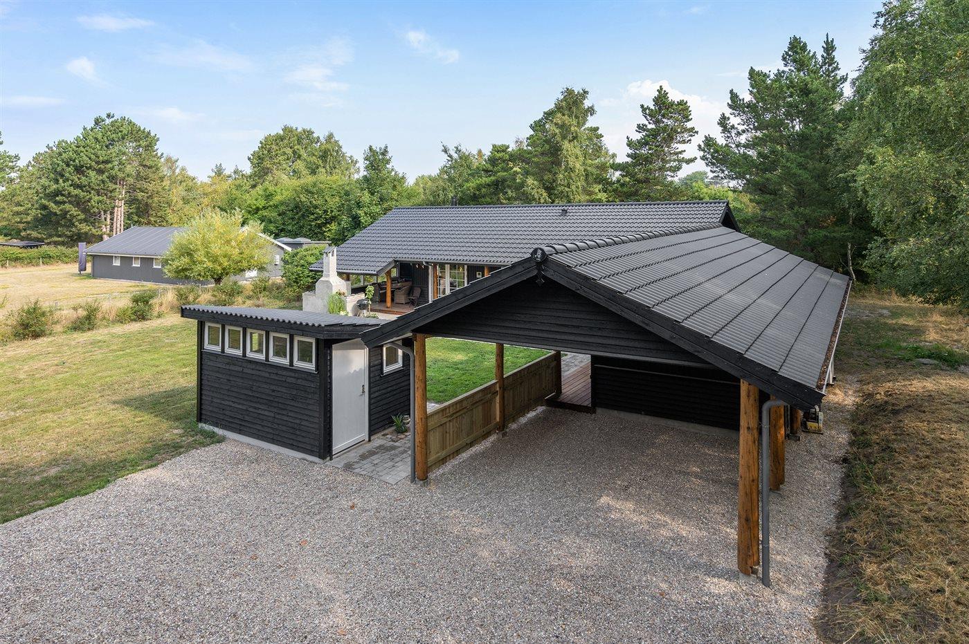 Ferieboligen er beliggende på en 1369 m² stor havegrund. Grunden er indhegnet. Der er 650 m til havet. Nærmeste forretning er beliggende i en afstand af 4200 m. Der er en golfbane i en afstand af 18000 m. Til ferieboligen hører 50 m² terrasseareal. Desuden er der 25 m² overdækket terrasse. Der er redskabsrum. Udendørs bruser. På lune aftener sørger en udendørs pejs for hyggelig stemning. Grill til rådighed. Der er carport til rådighed. Der er installeret stik til opladning af elbil. CEE stik. Med 11 kW ladeeffekt. Parkering ved ferieboligen.