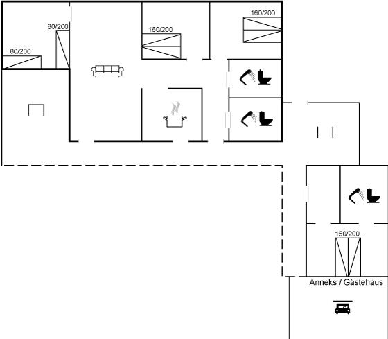 Der er i alt 4 soveværelser. Sovepladserne fordeler sig på: 6 sovepladser i dobbeltsenge. 2 sovepladser i enkeltsenge.- 2 af disse sovepladser befinder sig i et anneks. Derudover er der 1 stk. barneseng.
