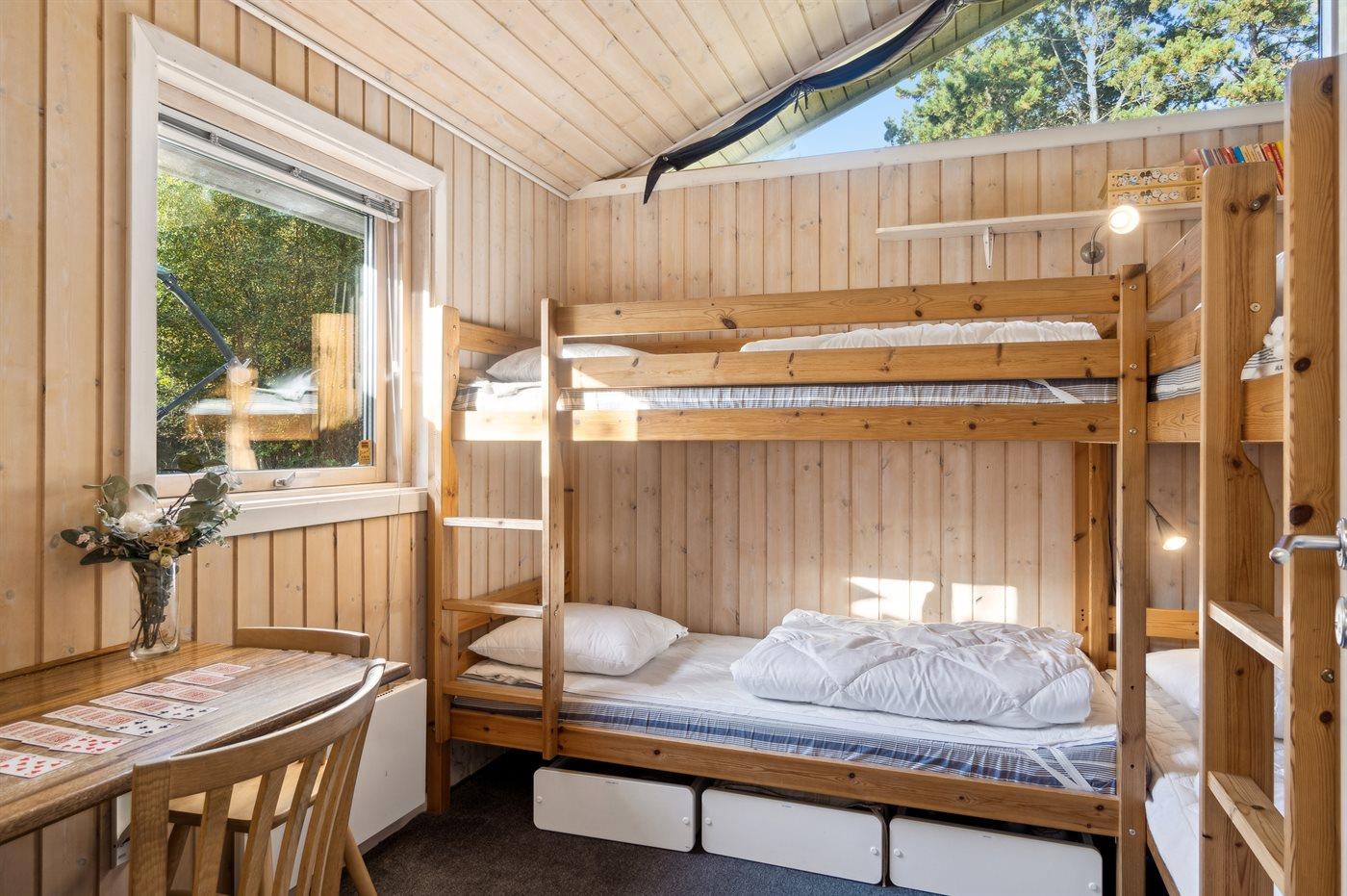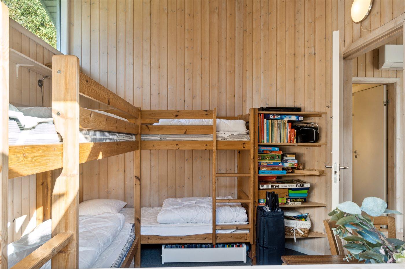 Der er i alt 4 soveværelser. Sovepladserne fordeler sig på: 6 sovepladser i dobbeltsenge. 2 sovepladser i køjeseng. Derudover er der 1 stk. barneseng.