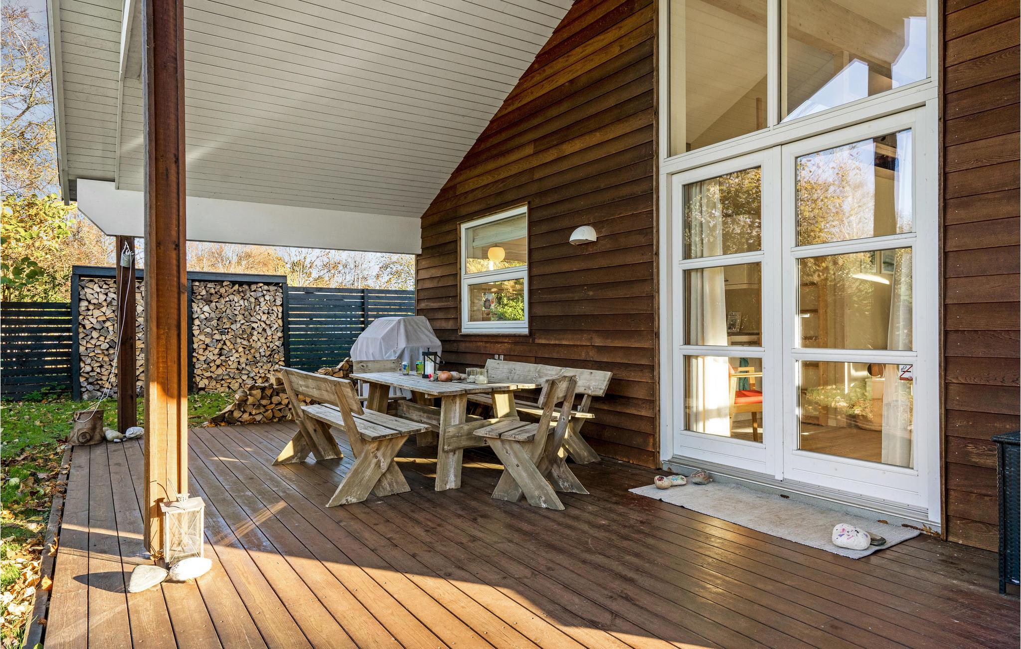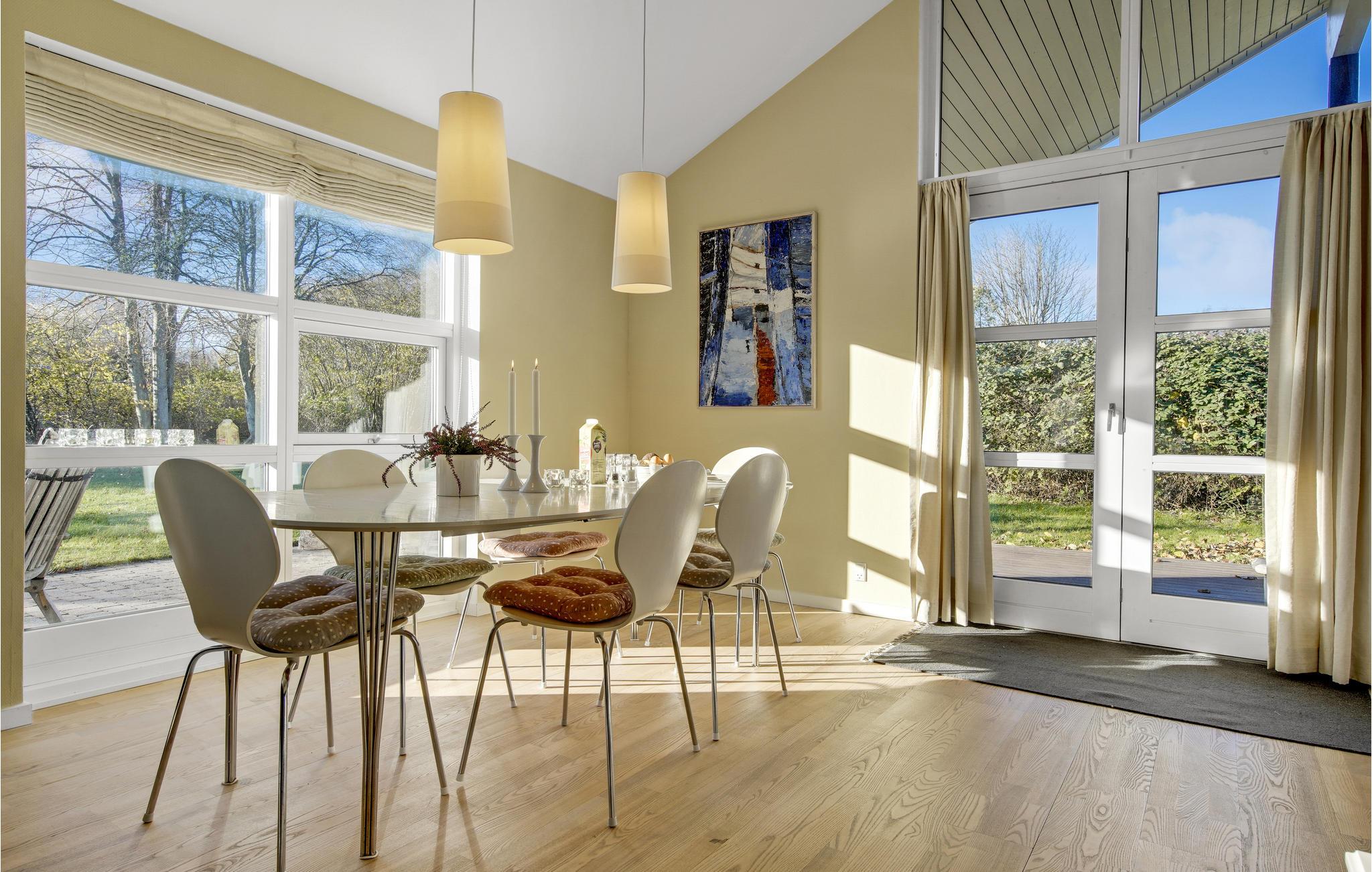 For enden af den smalle landtange Sjællands Odde finder I dette smukke feriehus kun få hundrede meter fra vandet. Indenfor venter der jer et fuldt udstyret interiør, som er indrettet i varme farver og indbyder jer til at føle jer godt tilpas og slappe af. I kan samles om måltiderne i den rummelige stue med udsigt over haven, og varme jer foran brændeovnen i den kølige årstid med hyggelige brætspil eller en god bog.