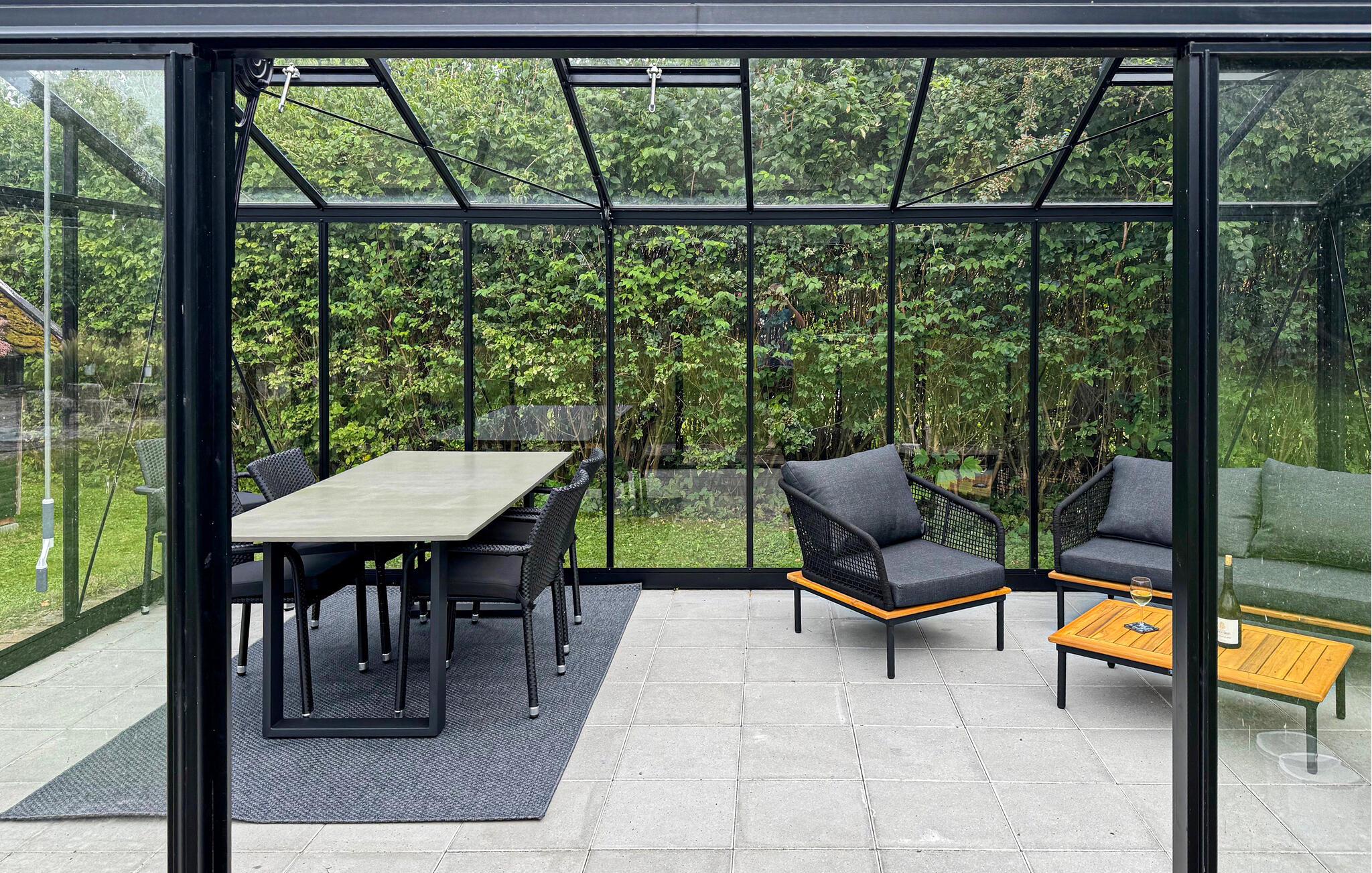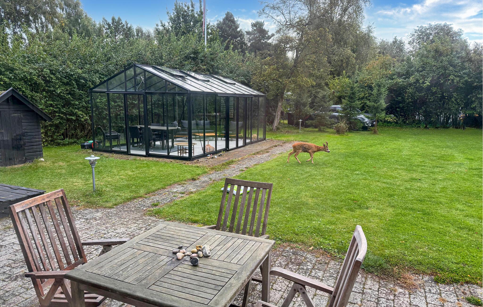 Feriehuset ligger på en rummelig naturgrund med terrasser og idylliske hjørner. Sæt jer godt til rette i havemøblerne med en kop friskbrygget kaffe eller en kold drink, mens børnene kan slå sig løs på det grønne område. Det perfekte sted til en stemningsfuld afslutning på dagen findes i drivhuset, som kan bruges hele året rundt takket være terrassevarmeren.