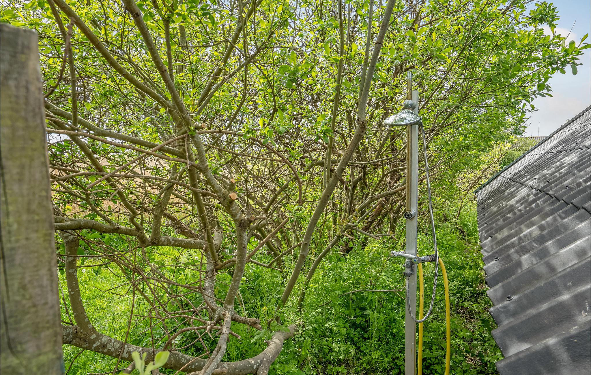 På den åbne terrasse kan I grille og slappe af, og komfortable liggestole inviterer til solbadning. Der er en udendørsbruser på ejendommen.