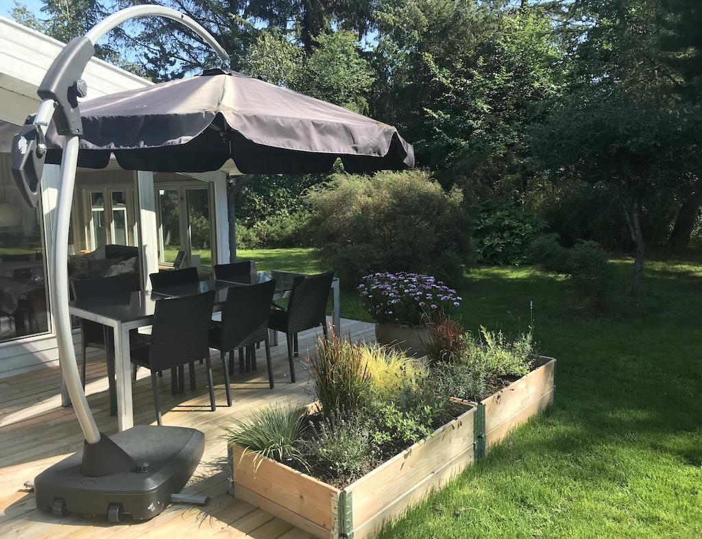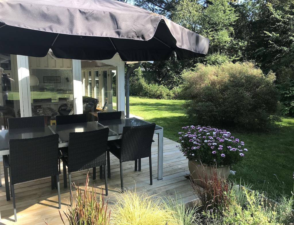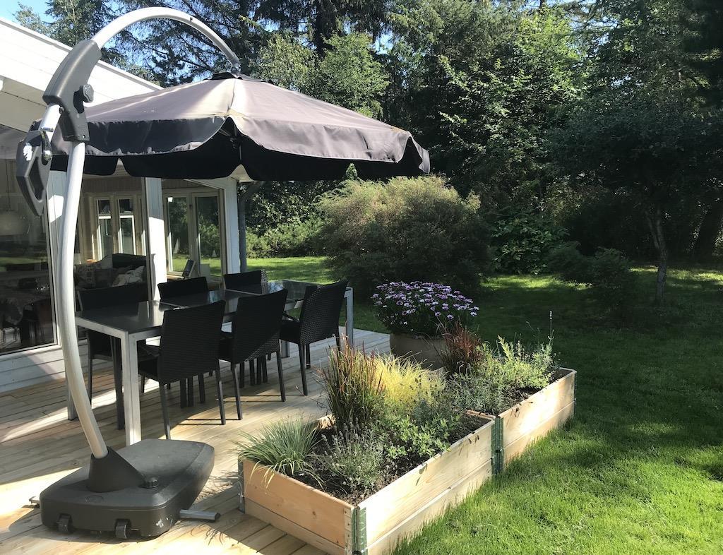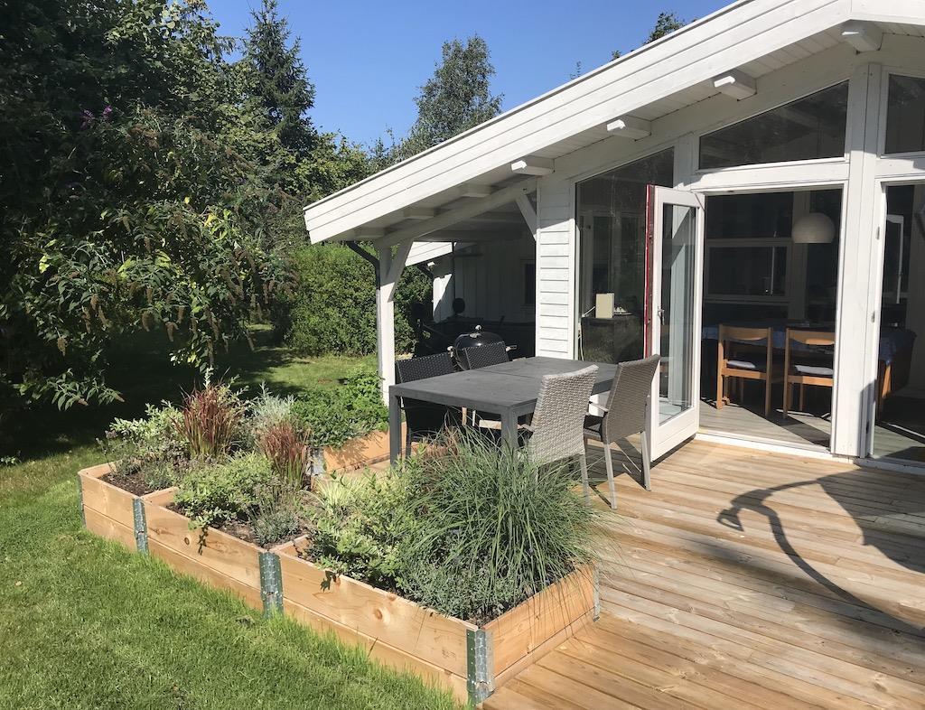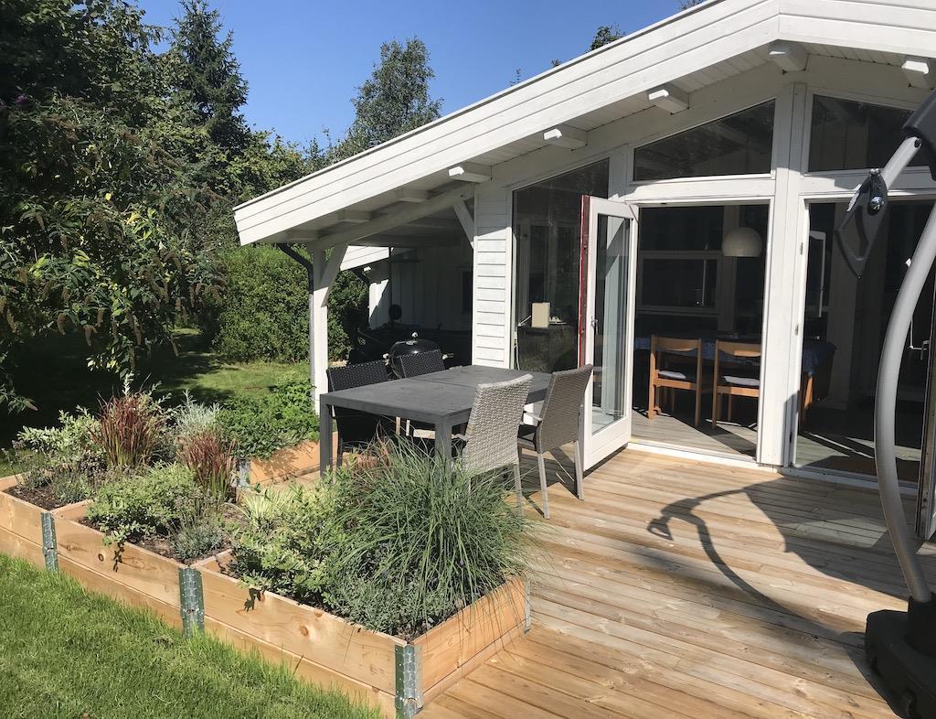 Der er også en dejlig, stor udestue med både en sofagruppe og et spiseområde, hvor I kan føle jer i et med naturen. Fra udestuen er der direkte adgang til den store, åbne terrasse, hvor I finder både grill og havemøbler. Grunden er indhegnet.