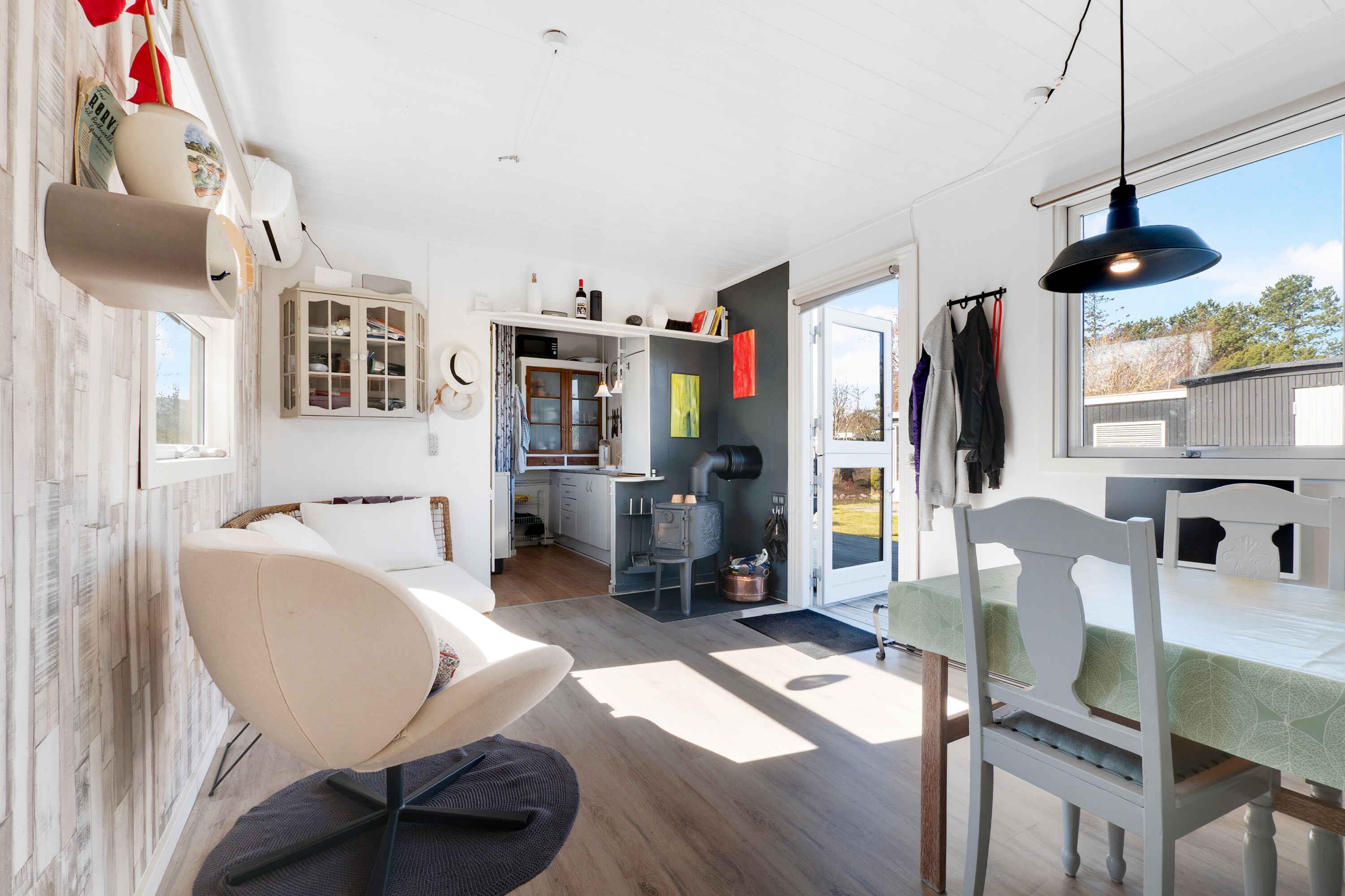 Hyggeligt sommerhus på Odden ?? Denne skønne oase af et sommerhus oser af ro, idyl og afslapning med kvalitetstid for hele familien. Huset er beliggende nær strand, havneby med havnebyens fisk og kaffebar, Olgas café, pop-up bager, Birkemosegaard og nær færgen til/fra Aarhus. Om morgenen, når I vågner, er der ikke mere en kort morgenkåbeafstand ned til vandet, hvor en forfriskende dukkert eller en dejlig gåtur langs vandet venter. Herefter venter vildmarksbadet, hvor I kan få dejlig varme i kroppen og ro i sjælen. ?? Huset er renoveret med en tilbygning og anneks og indeholder nu et stort soveværelse med hems med plads til 4 og et dejligt isoleret anneks med plads til 2 voksne og 2 børn. Plads til 6 personer i alt. Hertil råder huset over et toilet med bruseniche, funktionelt køkken samt en hyggelig stue med brændeovn. Der er her lagt op til masser af sommerhus-råhygge for dig og familien uanset hvad I finder på. ?? Der er en dejlig træterrasse med sol det meste af dagen samt et overdækket område, hvor udelivet kan nydes på trods af lidt regn eller lavere temperaturer. Grunden er 1200 M2 med masser af hyggekroge og plads til udfoldelse. Der er vildmarksbad, gynger, trampolin, lysthus, bålplads og forskellige ude-spil. I kan ofte se rådyr og harer løbe over grunden i de tidlige morgen eller aften timer. Olgas ligger 1 km fra sommerhuset, Superbrugsen ligger i Havnebyen (4 km) og Rema1000 i Lumsås (10 km) og har I brug for lidt liv, findes både Rørvig havn og Nykøbing Sj. indenfor 20-25 km. Det tager en time at komme ind til stor København og 1 1/2 time til Århus med færgen.
