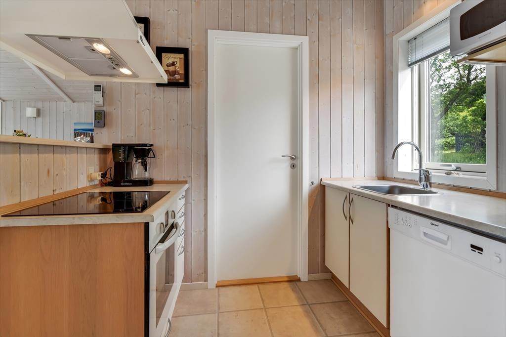 De naturskønne omgivelser er kun én af flere gode grunde til at holde ferie på Sjelborgdalen 22, for med sin velproportionerede planløsning og lyse, venlige atmosfære er sommerhuset i sig selv en attraktiv feriebolig. Der er to dejlige soveværelser og et pænt brusebadeværelse at gøre godt med, og centralt i huset ligger køkken og stue i åben forbindelse. Både sofaen og lænestolene indbyder til at nyde dagene i roligt tempo med en spændende bog og en varm kop kaffe – og hvis du vil spille kort eller nyde et lækkert måltid med dine kære, kan I sætte jer ved spisebordet, der er placeret lige ved stuevinduerne, så I kan nyde sollyset og det smukke landskab.