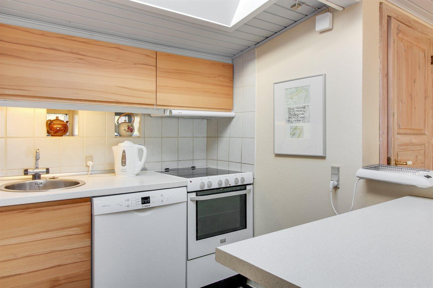Køkkenet er udstyret med 1 køleskab. Der er 4 keramiske kogeplader, varmluftovn, mikrobølgeovn samt opvaskemaskine.