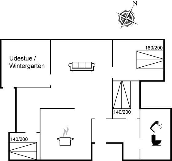Der er i alt 3 soveværelser. Sovepladserne fordeler sig på: 6 sovepladser i dobbeltsenge.