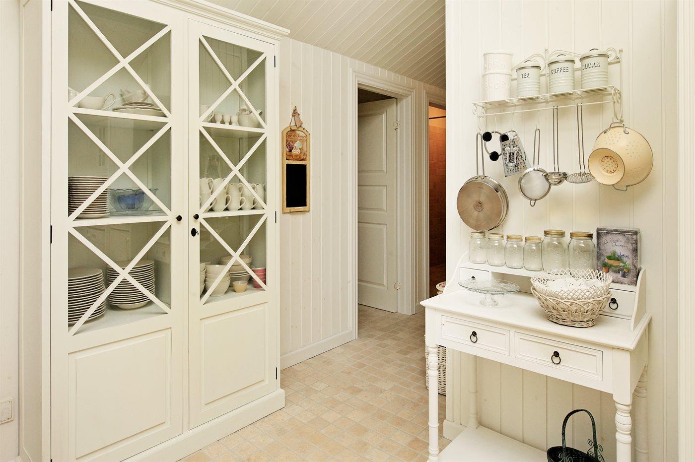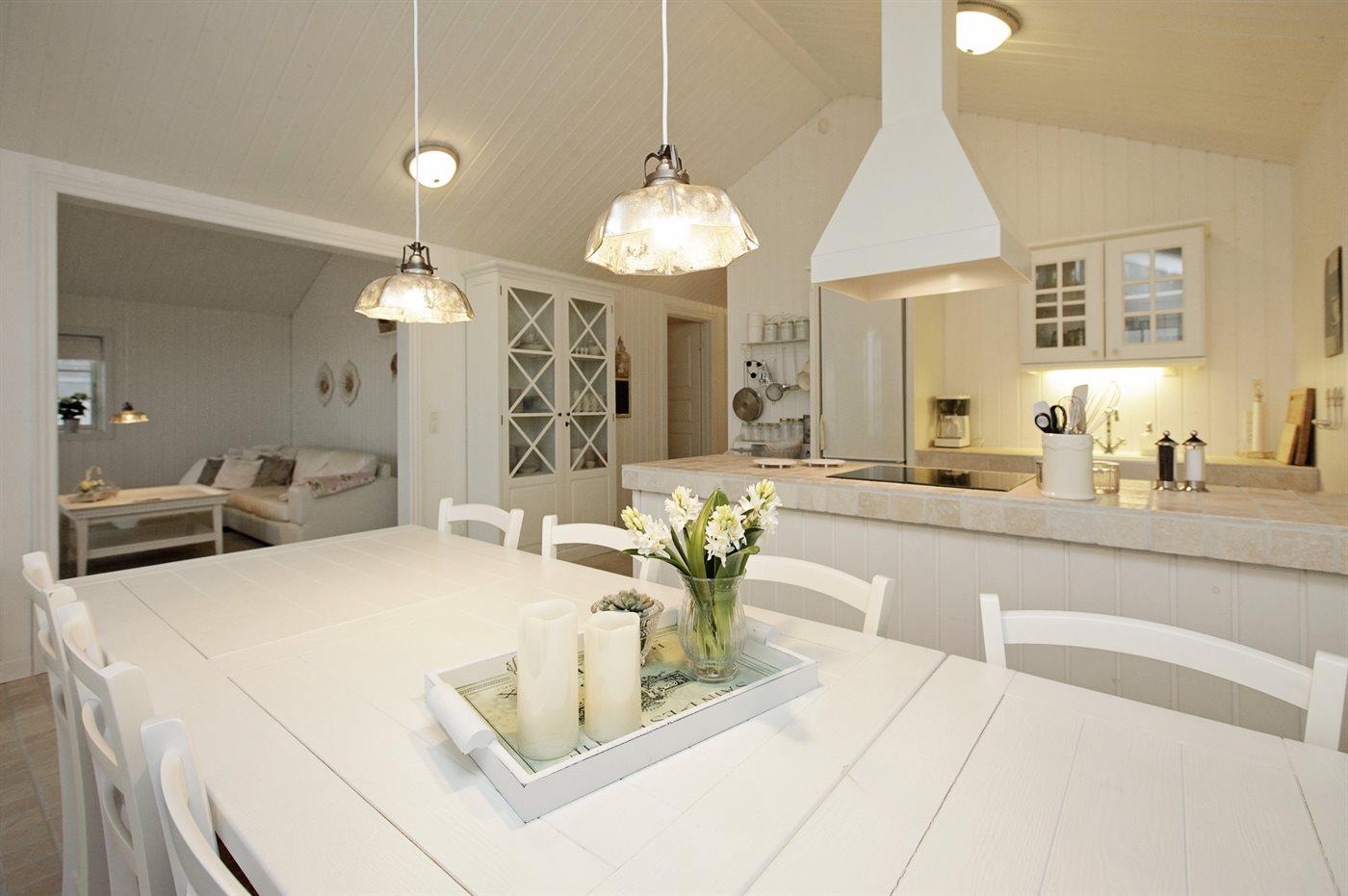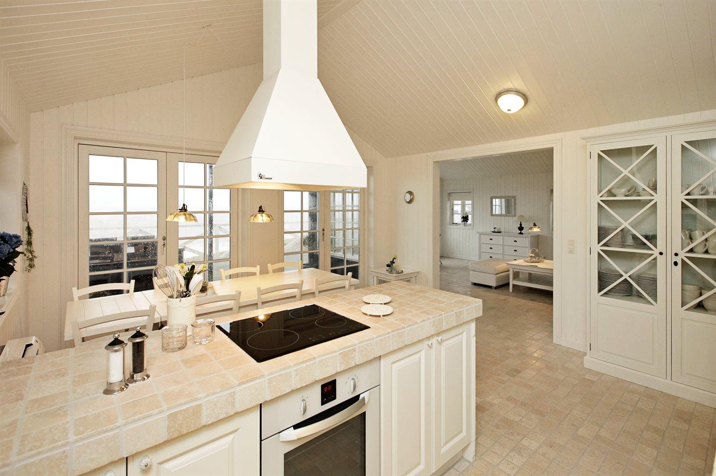 Køkkenet er udstyret med 1 køleskab. Der er 4 keramiske kogeplader, varmluftovn, mikrobølgeovn samt opvaskemaskine.