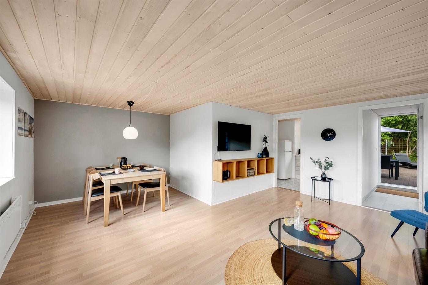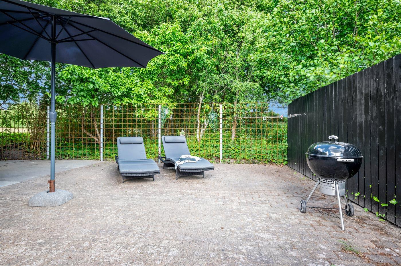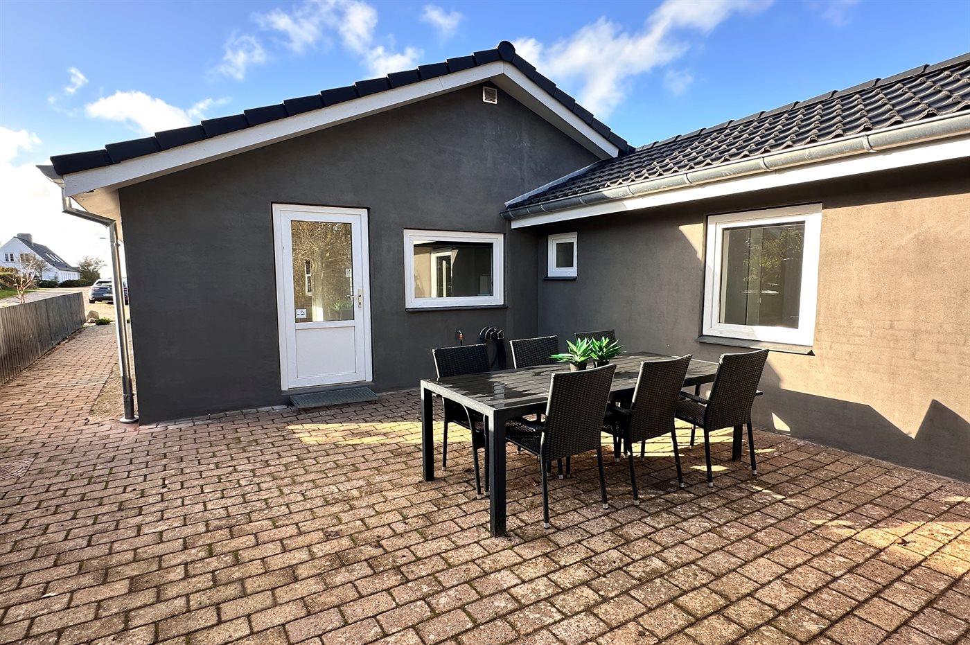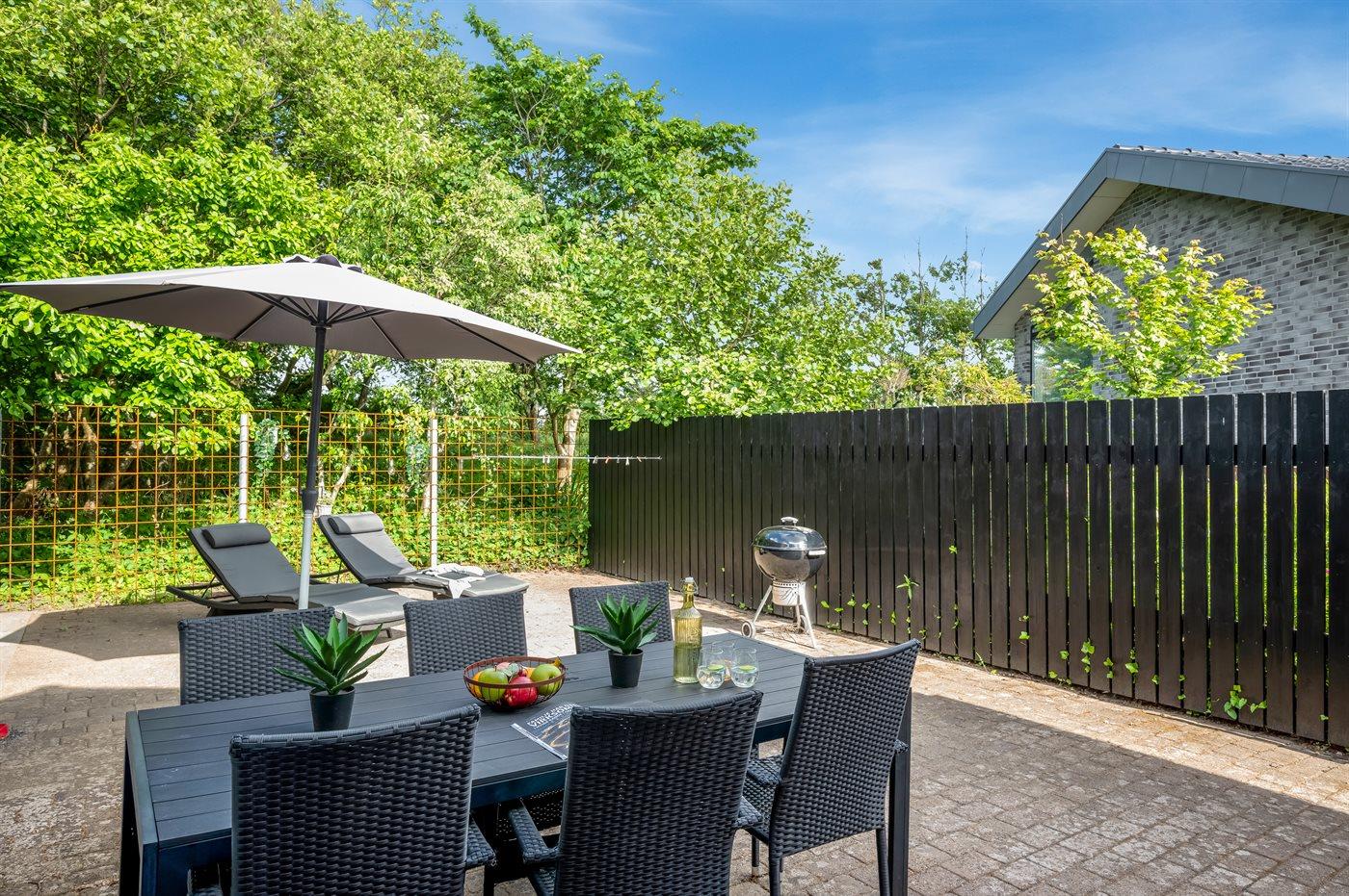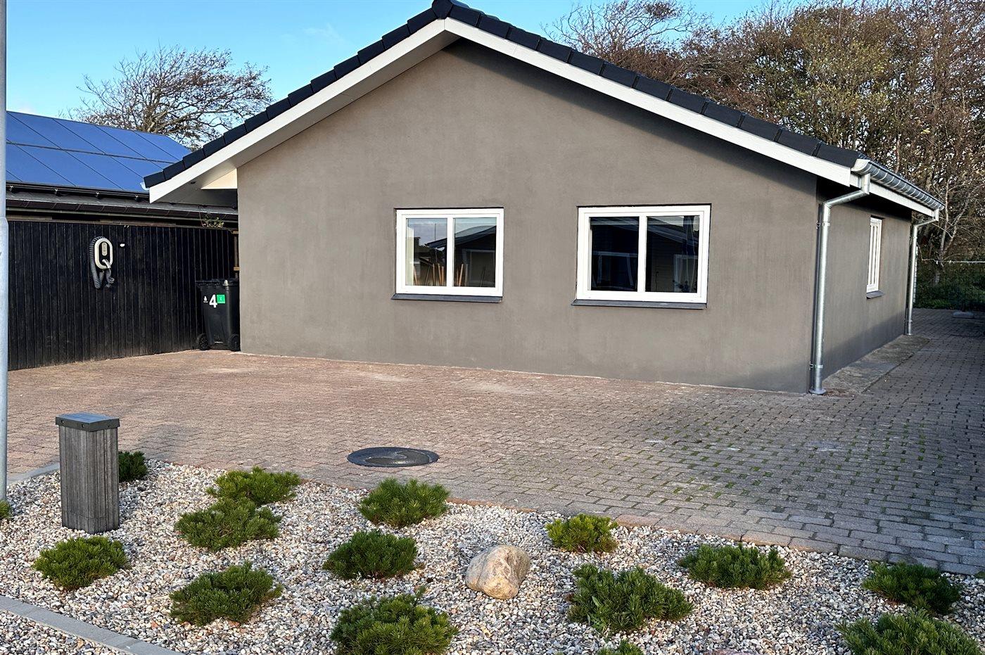 Ferieboligen er beliggende på en 300 m² stor naturgrund. Der er 150 m til havet. Nærmeste forretning er beliggende i en afstand af 2100 m. Til ferieboligen hører åbent terrasseareal. Der er installeret stik til opladning af elbil. Parkering ved ferieboligen.