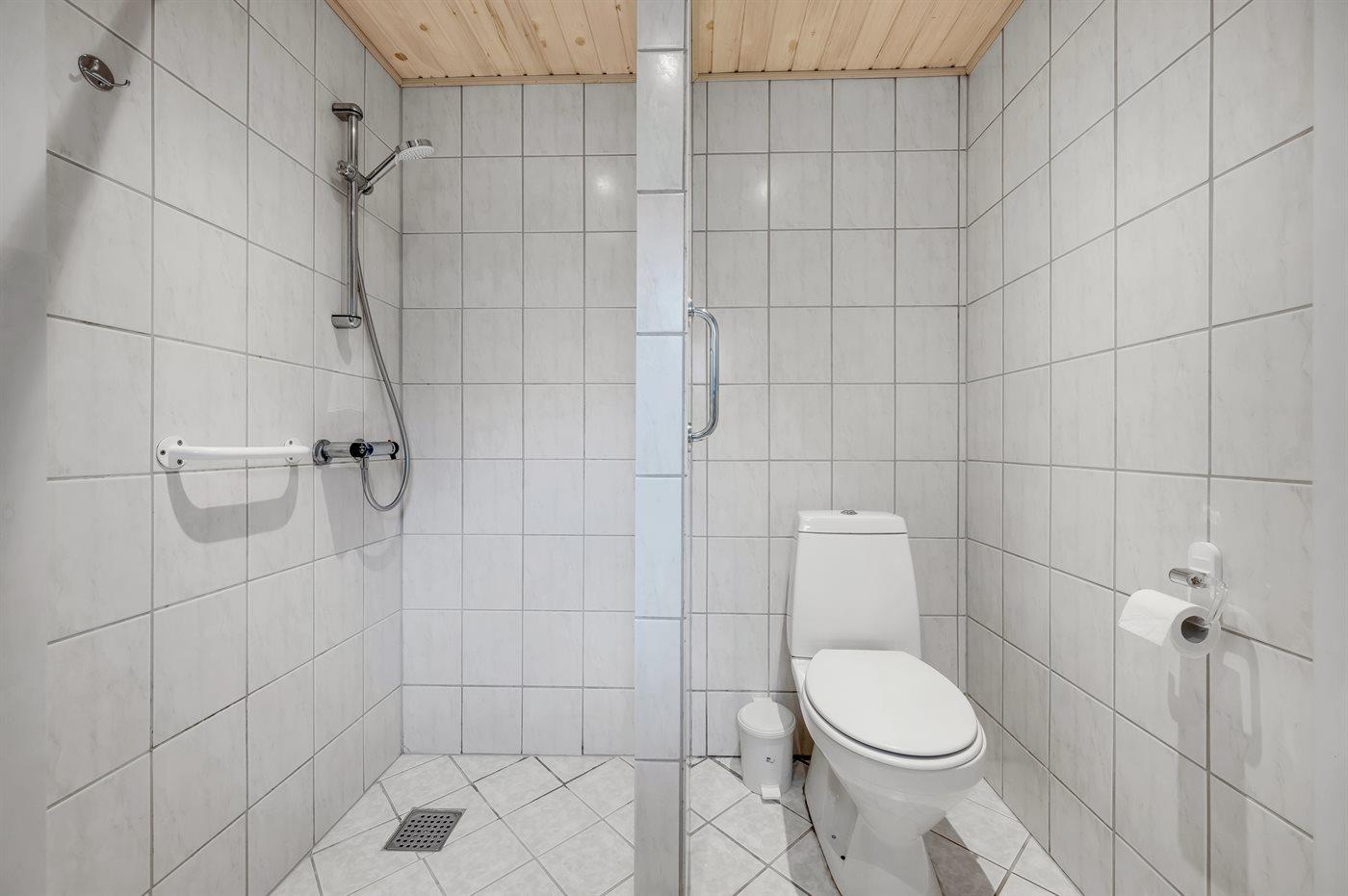 Der er 1 badeværelse med bruseniche og 1 toilet. Der er gulvvarme på 1 badeværelse.