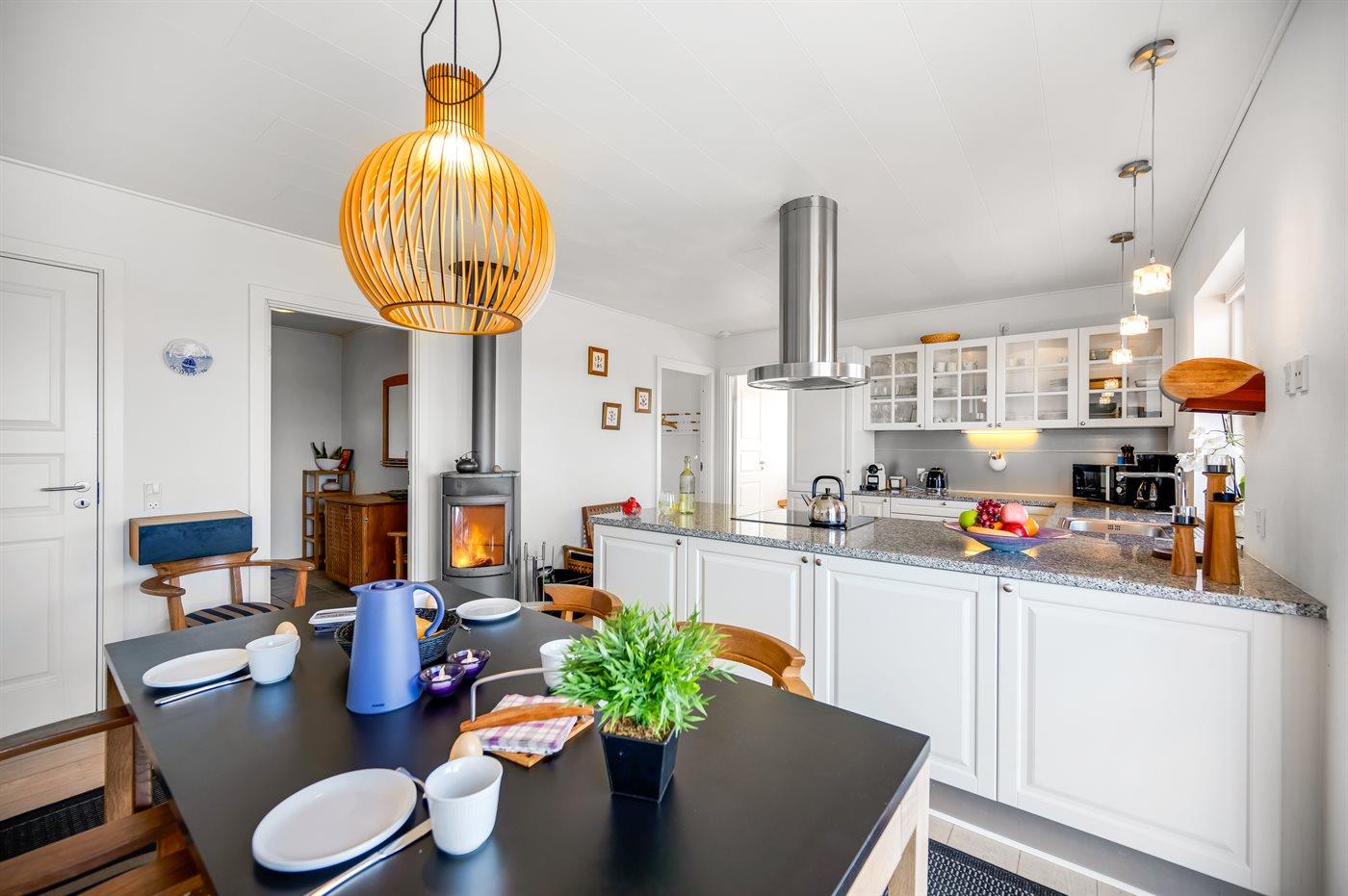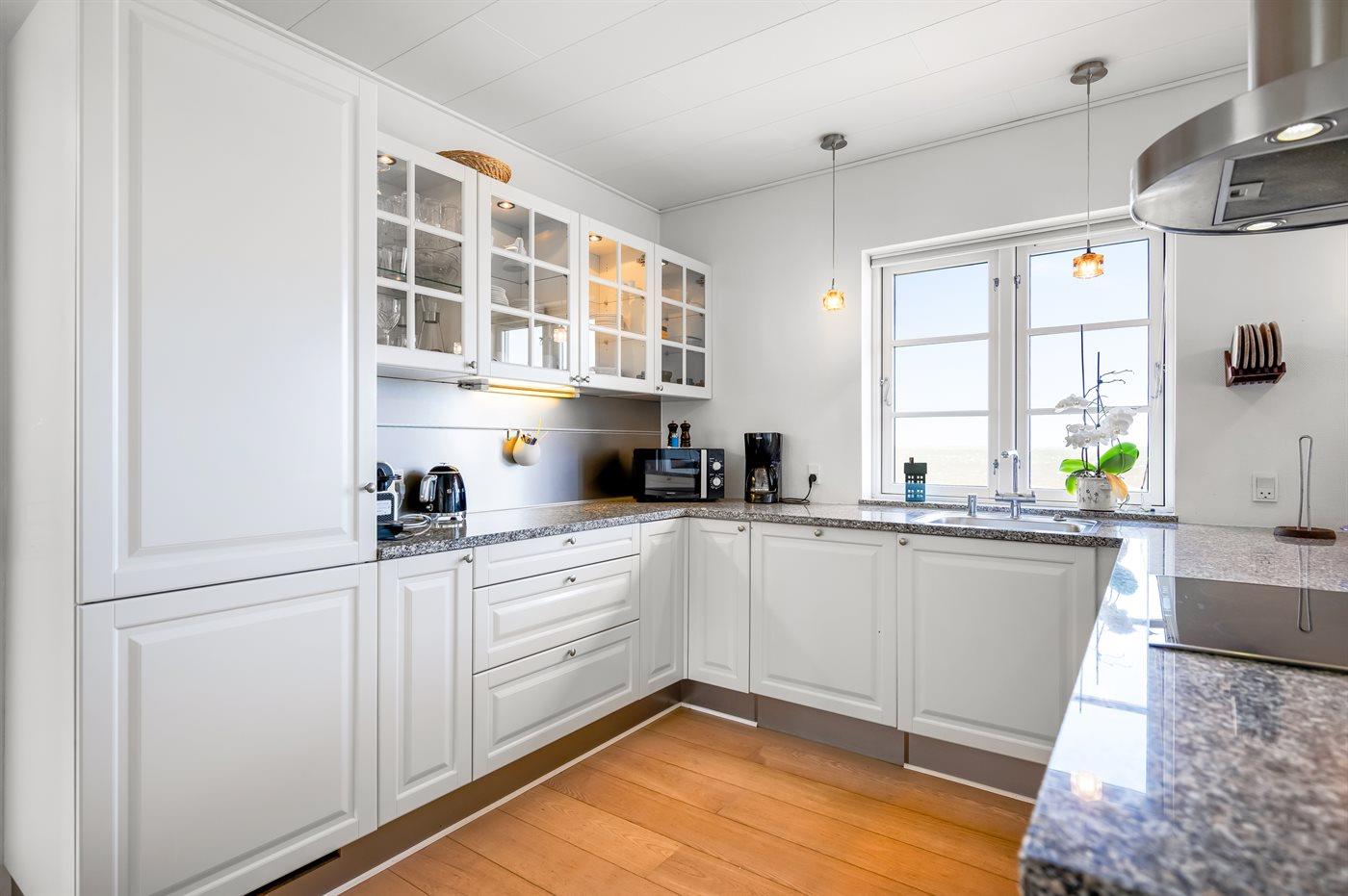 Køkkenet er udstyret med 1 køleskab. Der er 4 keramiske kogeplader, varmluftovn, mikrobølgeovn samt opvaskemaskine.