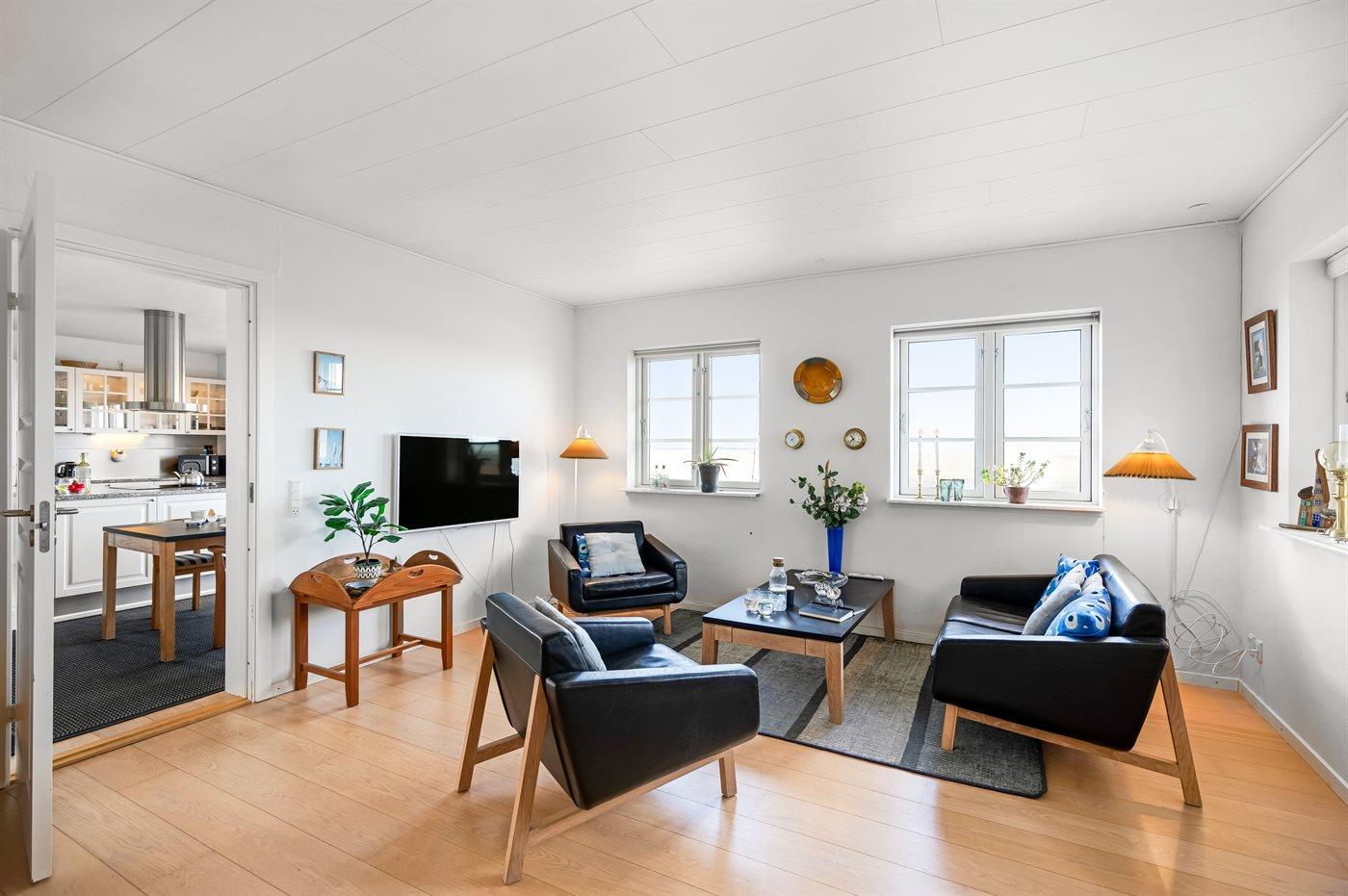 Der findes flere flisebelagte terrasser rundt om huset, hvorfra man kan nyde udsigten til standen og vandet i fulde drag. Fra den ene terrasse er der via en trappe direkte adgang fra til stranden.