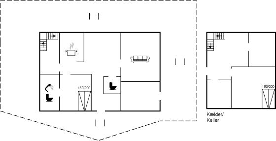 Huset er indrettet i 2 plan og fra kælderetagen, som er indrettet med soveværelse, entre og gæstetoilet, er der direkte adgang til en solgård, ligesom der naturligvis er adgang til stueplan via den indvendige trappe.