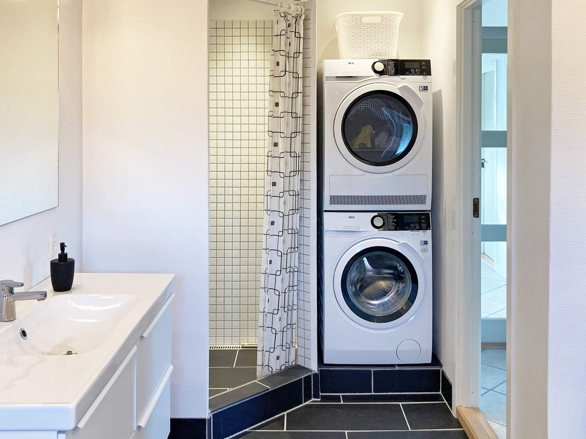 Bad/wc: Vaskemask., tørretumbler, wc, håndvask, bruser