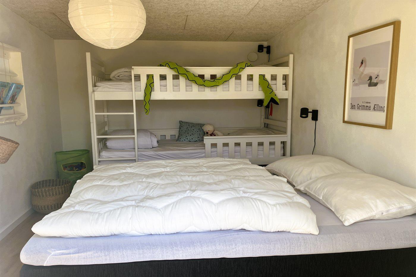 Der er i alt 3 soveværelser. Sovepladserne fordeler sig på: 6 sovepladser i dobbeltsenge. 2 af disse sovepladser befinder sig i et anneks. Derudover er der 1 stk. barneseng.
