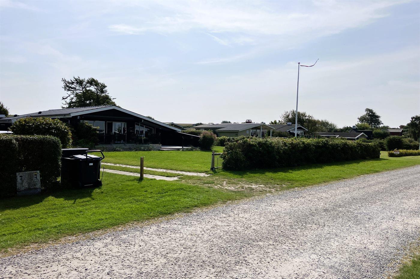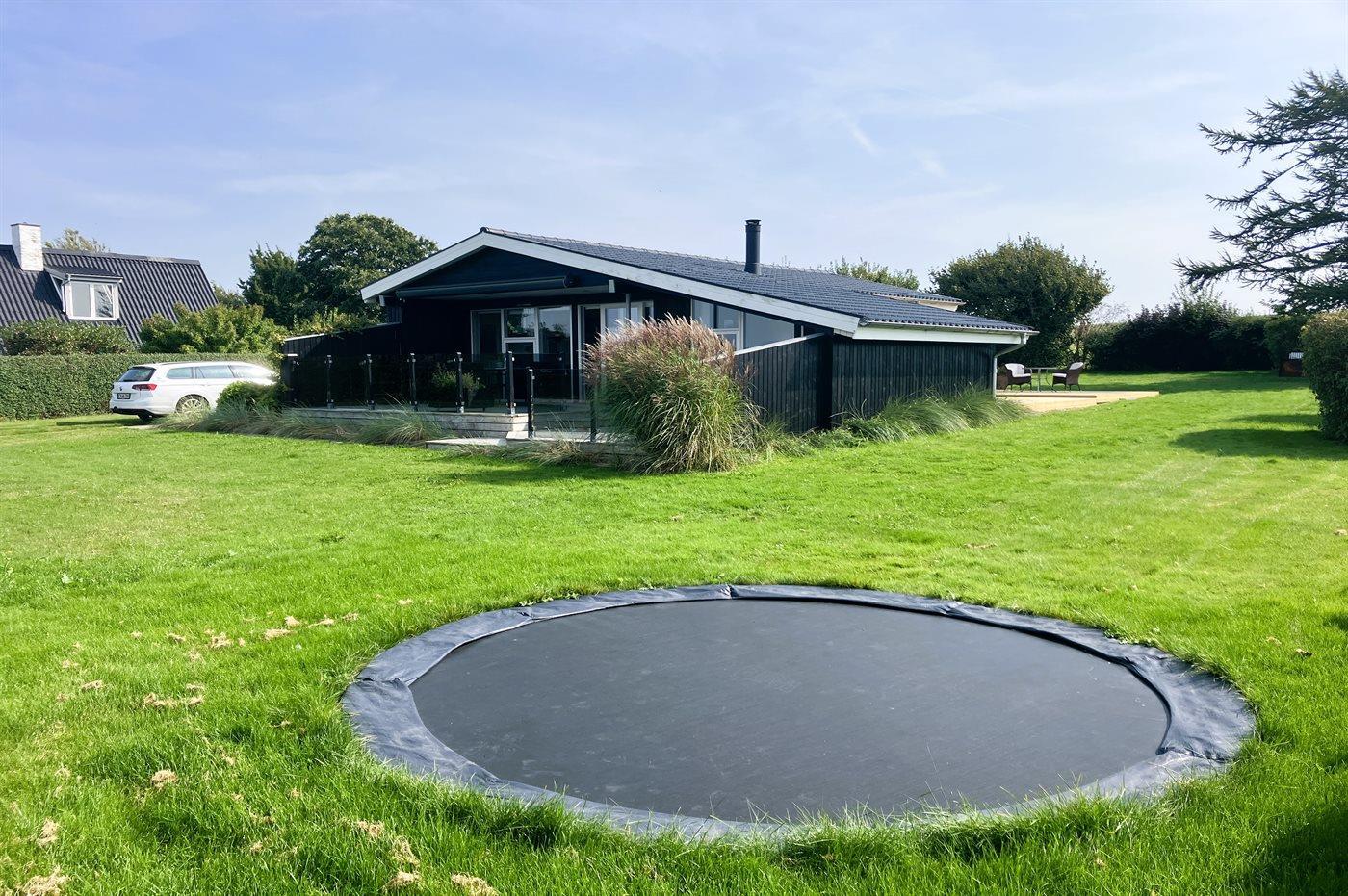 Ferieboligen er beliggende på en 1236 m² stor havegrund. Grunden er indhegnet. Der er 350 m til havet. Der er en badebro i nærheden. Nærmeste forretning er beliggende i en afstand af 6500 m. Der er en golfbane i en afstand af 7300 m. Gynge. Sandkasse. Trampolin. Bålsted. Udendørs bruser. Grill til rådighed. Parkering ved ferieboligen.