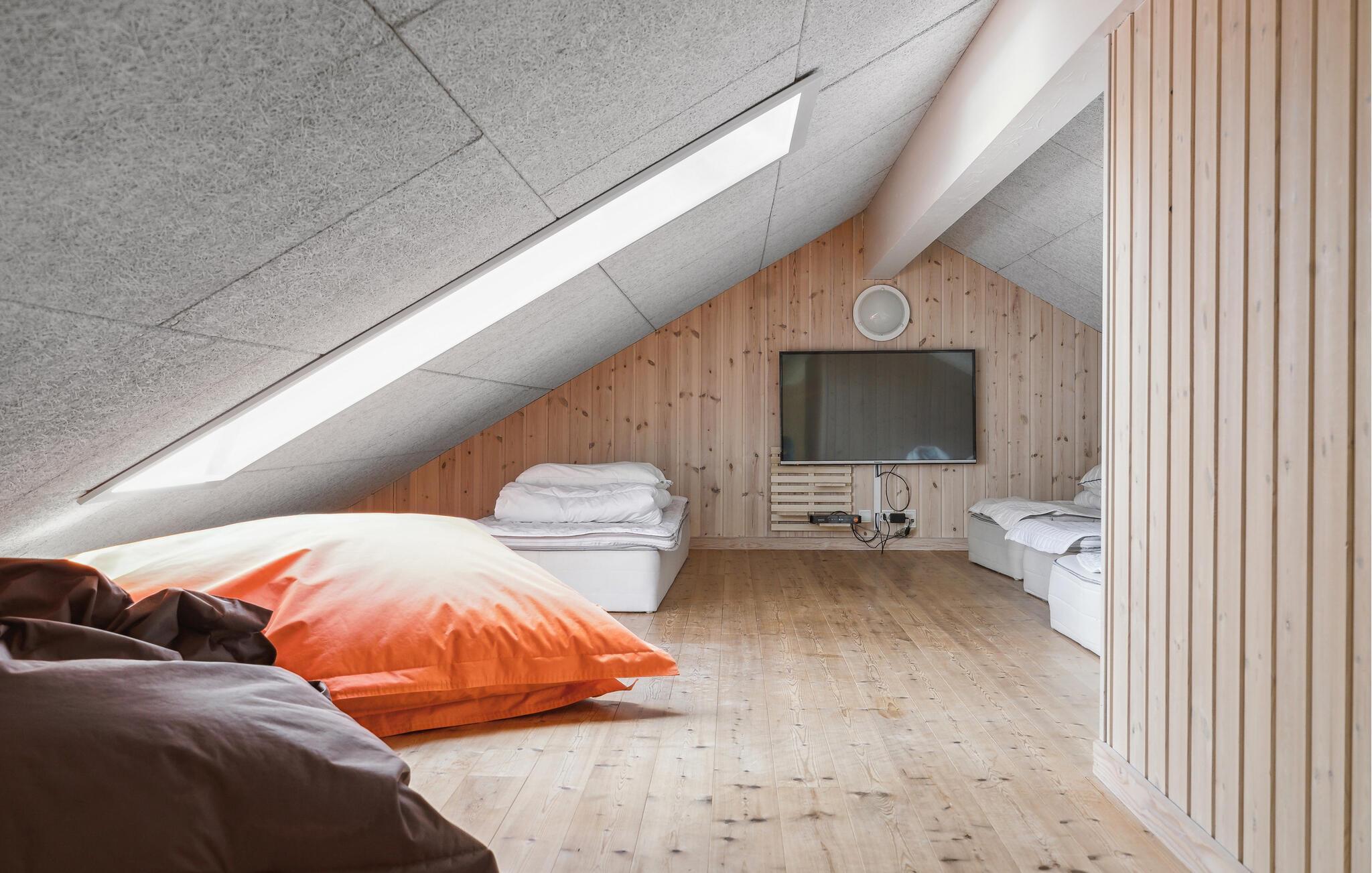 Velkommen til dette rummelige feriehus på Skåstrup Strand, som er ideelt til en familieferie med flere generationer eller en større vennegruppe. Her er der alt, hvad I skal bruge til jeres feriedage. I kommer sikkert til at bruge en god del af tiden i indendørspoolen, hvor børnene kan suse direkte ned i vandet fra rutsjebanen. Efter en lang dag på farten kan I finde roen i saunaen eller læne jer godt tilbage i det afslappende spabad. Feriehuset byder også på et aktivitetshus, hvor hele familie kan kaste sig over sjove spil.