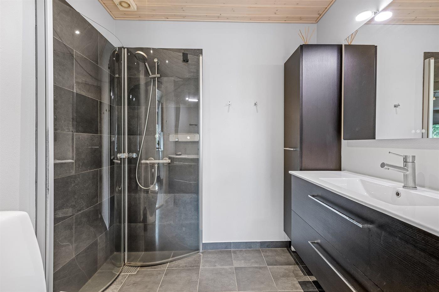 Der er 1 badeværelse med bruser og 1 toilet.. Der er gulvvarme på 1 badeværelse.