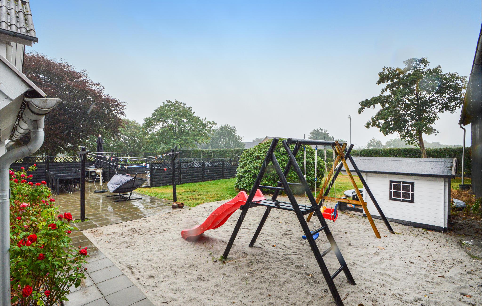 Den skønne terrasse med gode havemøbler, ligger op til den store, opvarmede swimmingpool, der er afskærmet og lukket med hegn (poolen kan benyttes fra uge 23 til og med uge 38). I den store have er der masser af plads til udfoldelse, og børnene kan hygge sig på trampolinen, rutsjebanen og de andre legeredskaber. Her er god mulighed for ren afslapning og komme helt ned i gear. Den nærmeste nabo er et aktivt landbrug med græssende malkekøer på markerne.