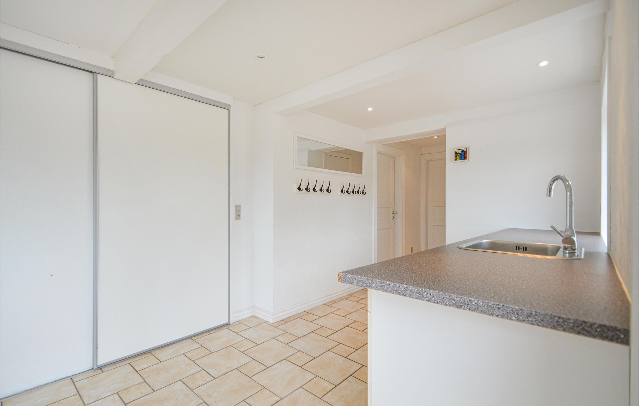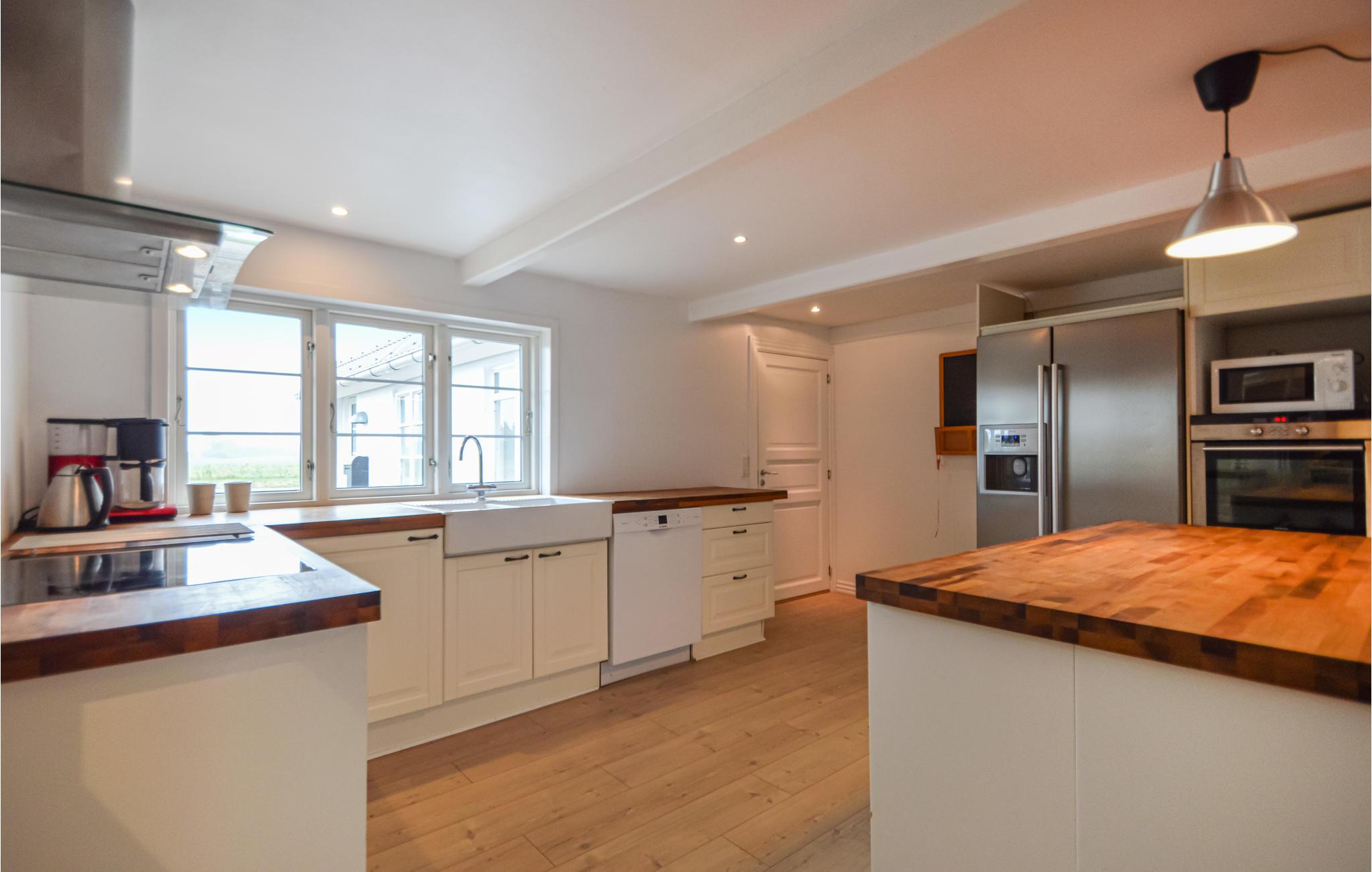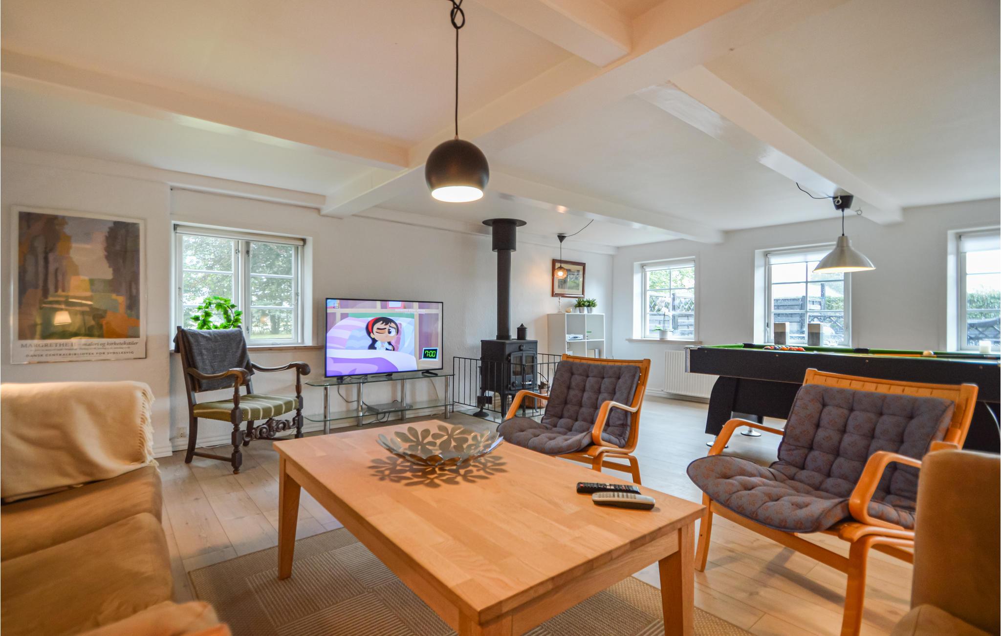Ferieboligen fra 1740 er meget rummelig og charmerende, og de orginale, gamle bjælker er synlige i loftet. I huset findes seks gode soveværelser til i alt 12 personer - tre af værelserne er placeret på 1. sal, og har en lidt lavere loftshøjde. Fra køkkenet har I udsigt til markerne og direkte adgang til spisestuen og videre til opholdsstuen. I kan få flere timer til at gå i aktivitetsrummet, der indeholder både poolbord og bordfodbold.
