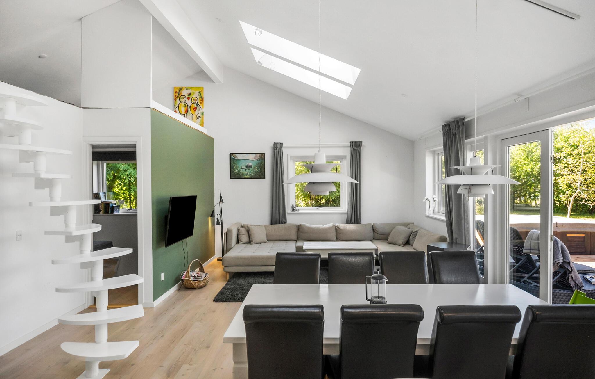 Nyd den hyggelige atmosfære i dette hus, som er noget særligt med lyse værelser, venlig indretning og smukke detaljer. Begynd dagene på en afslappende måde med morgenmad ved spisebordet i den åbne opholdsstue. Morgenlyset skinner gennem de store vinduespartier og skaber en varm atmosfære. Brug lokalet til fælles måltider, stimulerende samtaler eller hyggeleg.