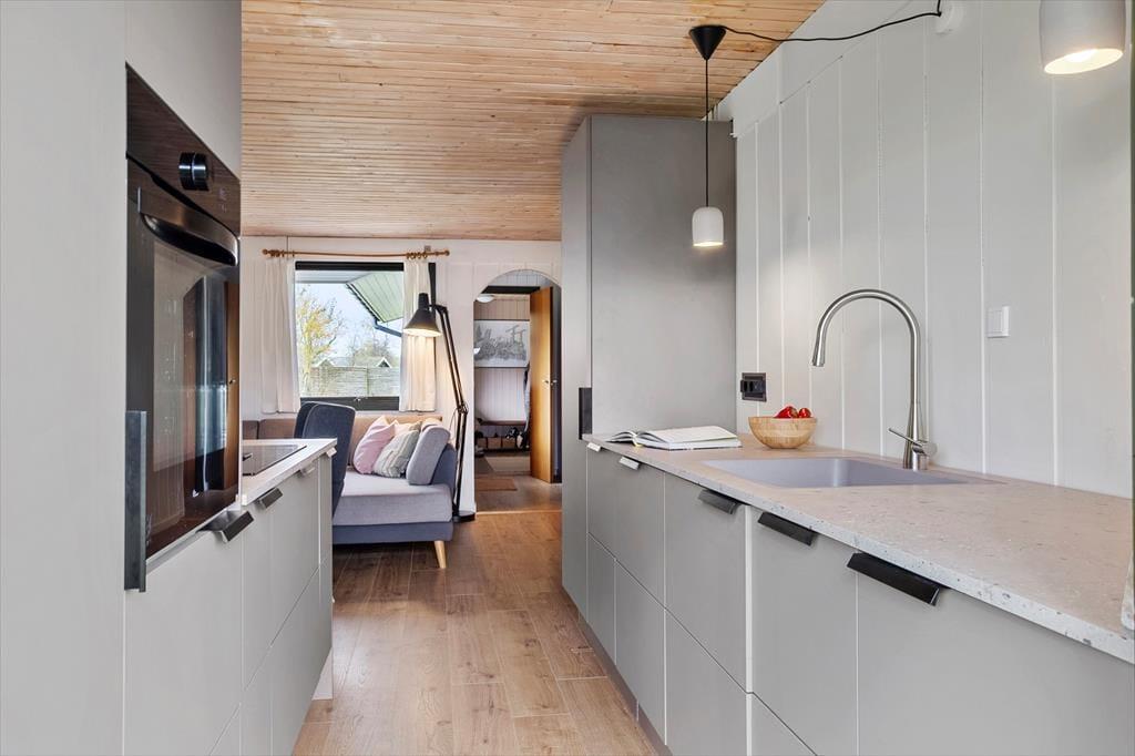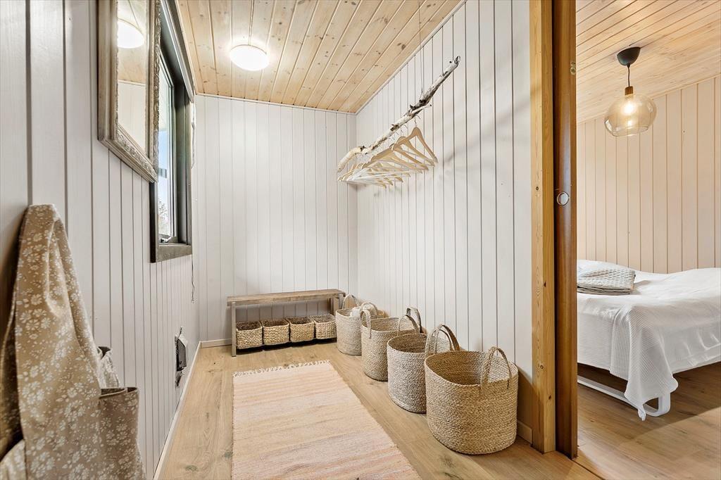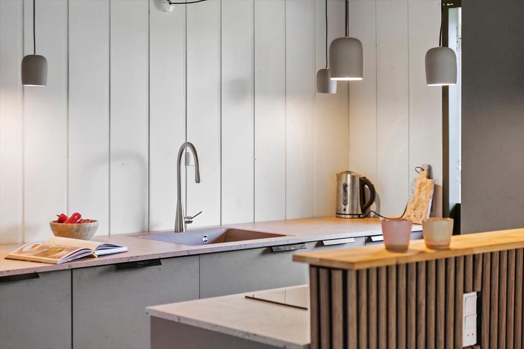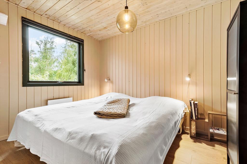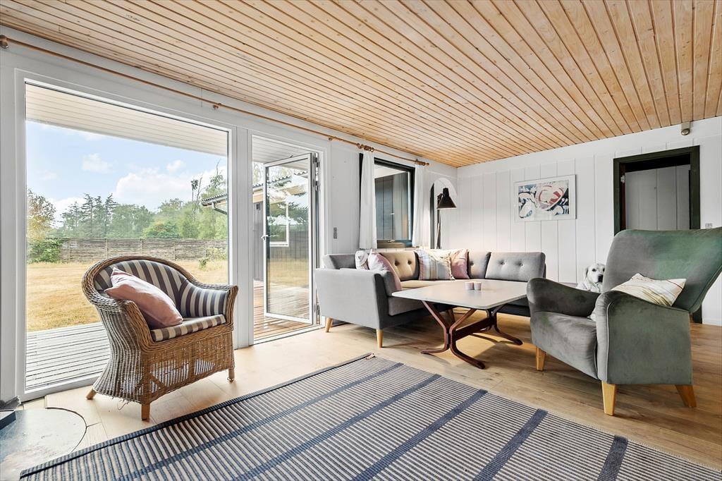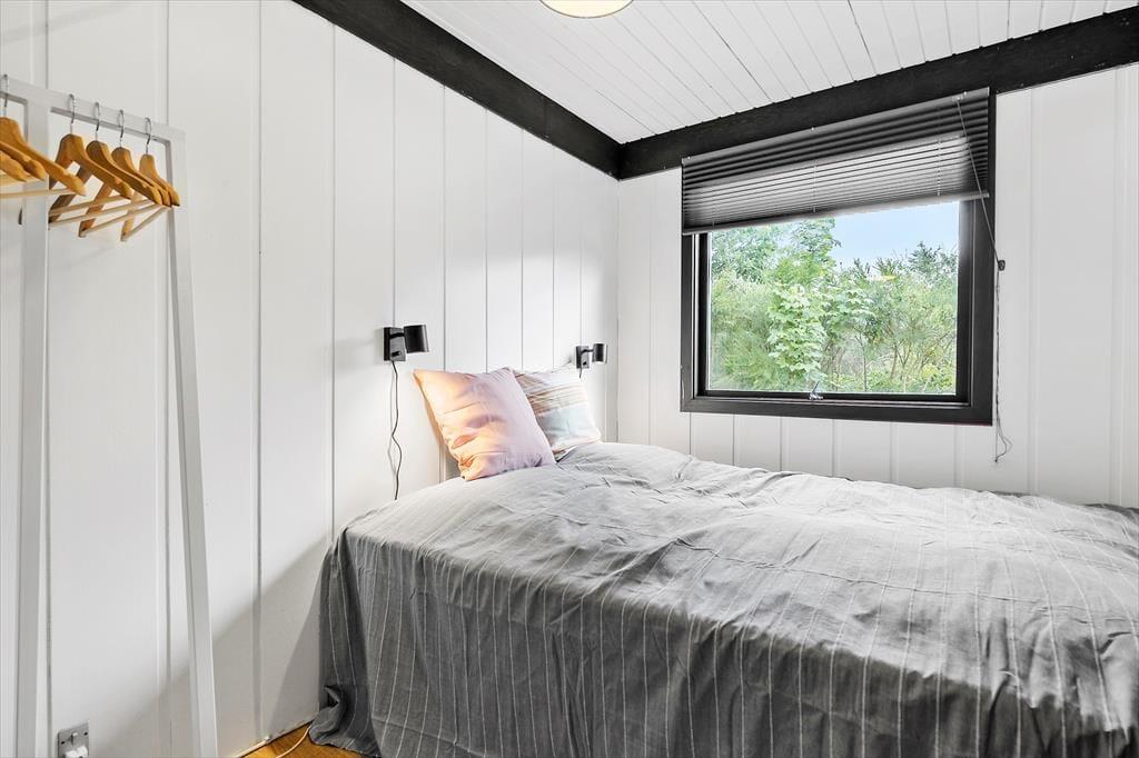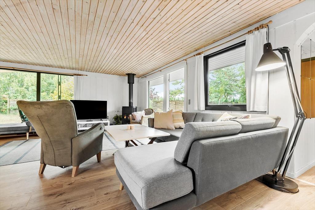 Når du træder indenfor, mødes du af et lyst og enkelt indrettet hjem, der skaber en afslappet atmosfære. Stuen er indbydende med store vinduer, der lukker masser af lys ind, og en brændeovn, som skaber hygge på køligere dage. Huset har et funktionelt køkken, hvor der er mulighed for at lave gode måltider til hele familien. Soveværelserne er rummelige og komfortable, og badeværelset er med bruser.