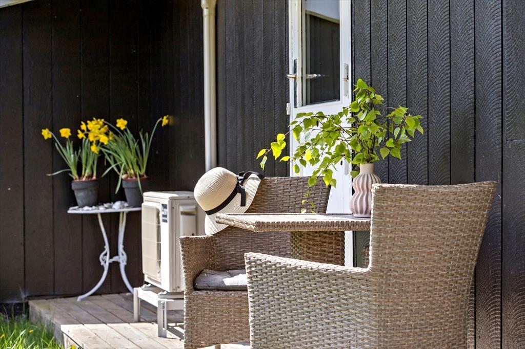 Udendørs venter en terrasse med udsigt til de grønne omgivelser. Her kan du starte dagen med en kop kaffe eller tilbringe aftenen med grillmad i godt selskab. Haven er et dejligt sted til afslapning, og der er rig mulighed for at tage på gåture eller cykelture i nærområdet. Skulle du have lyst til en stille stund, er der altid et hjørne, hvor du kan finde ro og nyde naturen.