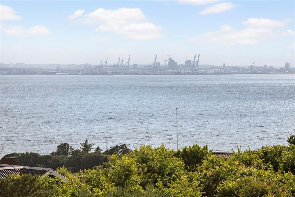 Huset ligger højt, så udsigten over Aarhus Bugten er meget smuk.