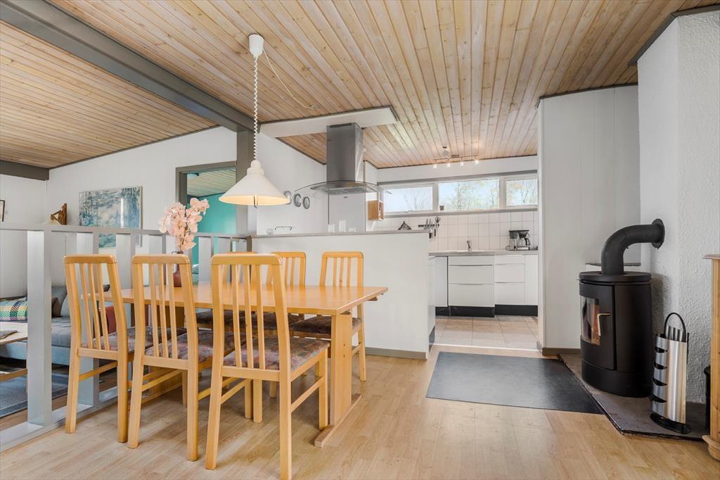 Træd ind i dette hyggelige feriehus på Skovvej 18, hvor der er plads til op til fire personer og jeres firbenede venner. Med tre soveværelser, et lyst badeværelse og et åbent køkken-alrum er der god plads til både samvær og afslapning. Stuen er indrettet med komfortable møbler og en brændeovn, der skaber en varm og indbydende atmosfære på kølige aftener. Her kan I nyde en god bog, spille spil eller bare slappe af efter en dag fuld af oplevelser.
