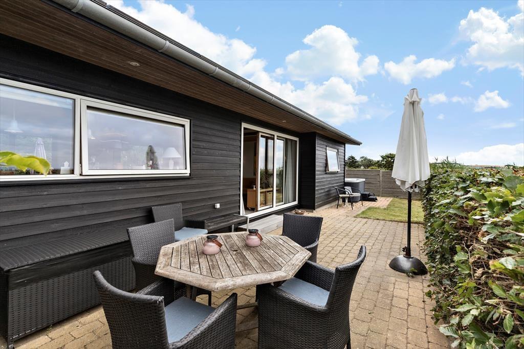 Udendørs er der en skøn terrasse og en rummelig have, ideel til solbadning og grill. Sommerhuset har en stand spa og en delvist overdækket terrasse, hvor man kan slappe af selv ved dårligt vejr. Den private strand ligger kun 50 meter væk, hvilket giver nem adgang til vandet. Beliggenheden på Djursland giver desuden nem adgang til lokale attraktioner som Ebeltoft, Djurs Sommerland og Nationalpark Mols Bjerge.