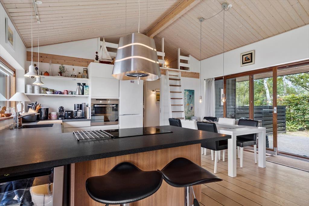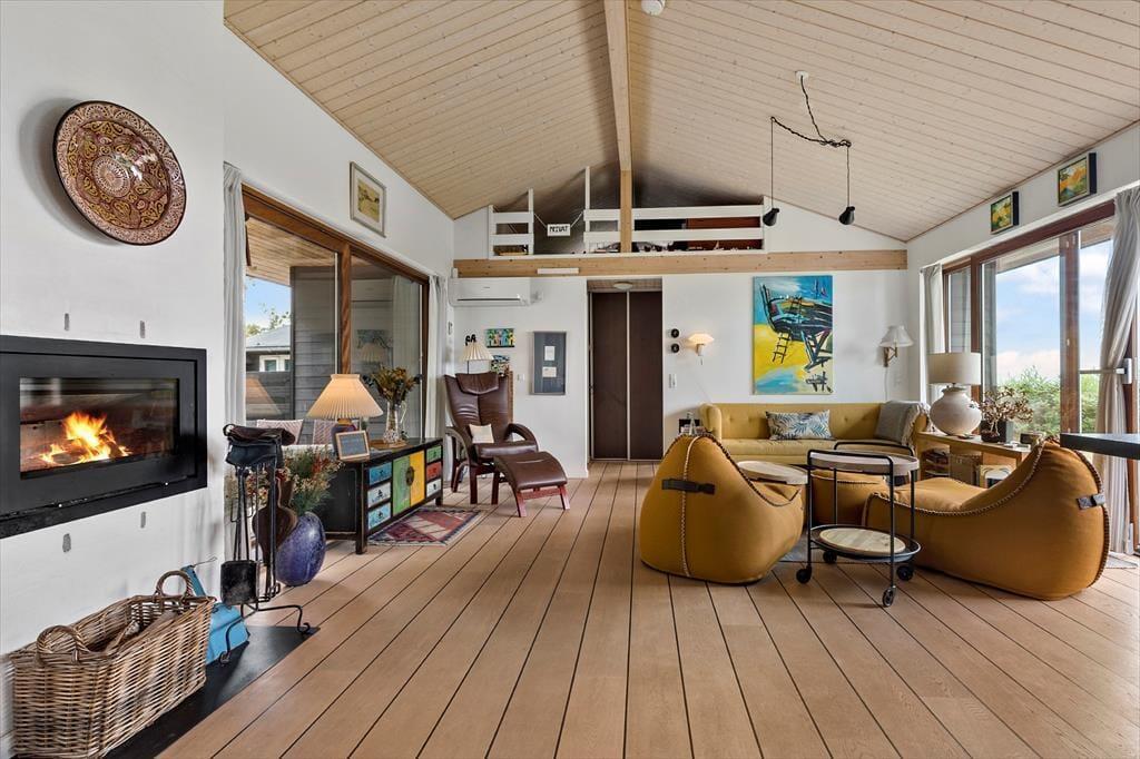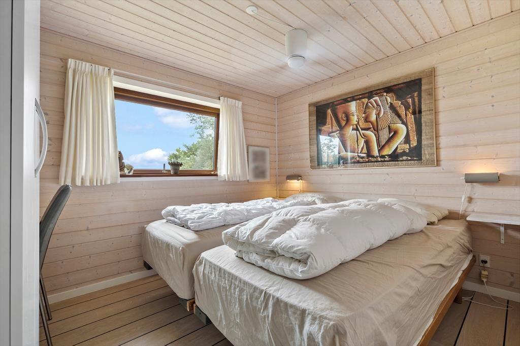 Dette moderne sommerhus ved Skødshoved Strand byder på en lys og venlig atmosfære med stilfuld og komfortabel indretning. Husets hjerte er det åbne køkken-alrum med spiseplads, hvorfra man kan nyde den unikke udsigt over Århus Bugt. Flere soveværelser og to badeværelser sikrer både privatliv og hygge, perfekt til familier eller par.