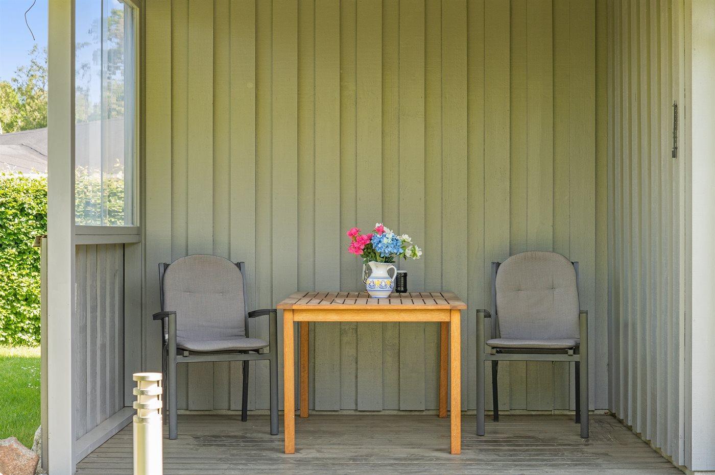 Ferieboligen er beliggende på en 1397 m² stor havegrund. Der er 250 m til havet. Nærmeste forretning er beliggende i en afstand af 5000 m. Til ferieboligen hører åbent terrasseareal. Desuden er der overdækket terrasse. Grill til rådighed. Der er carport til rådighed. Parkering ved ferieboligen.