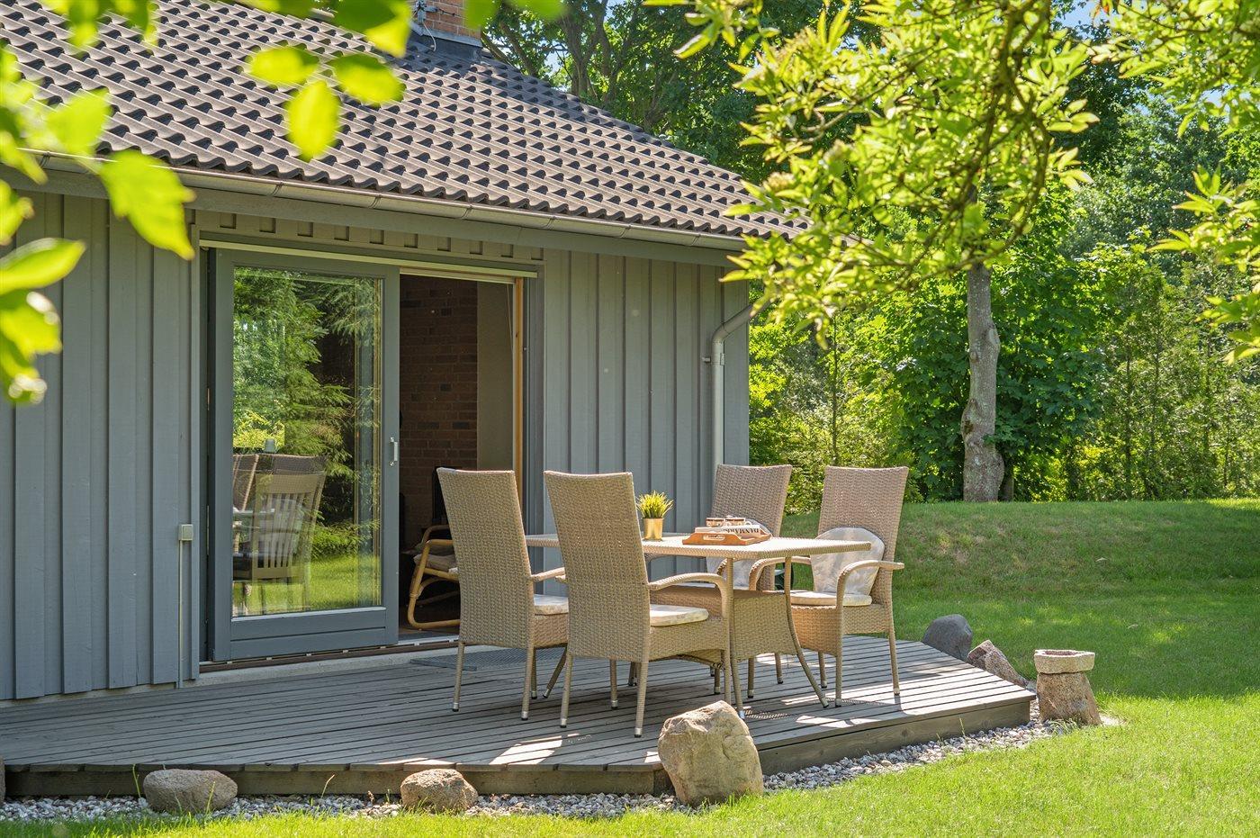 Velholdt sommerhus tæt på vandet med terrasse og naturskøn beliggenhed i Knebel.