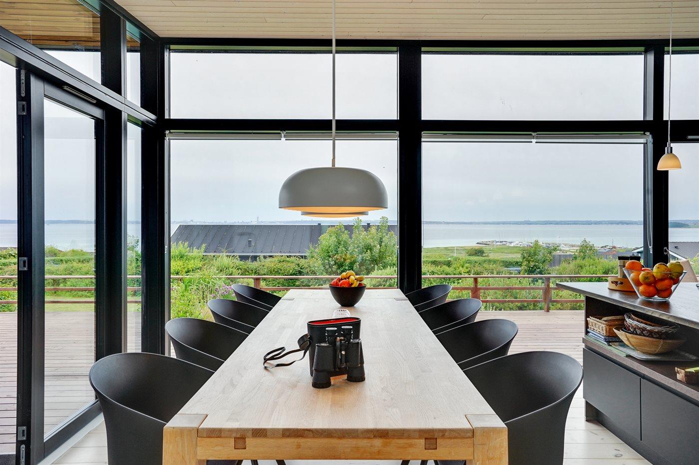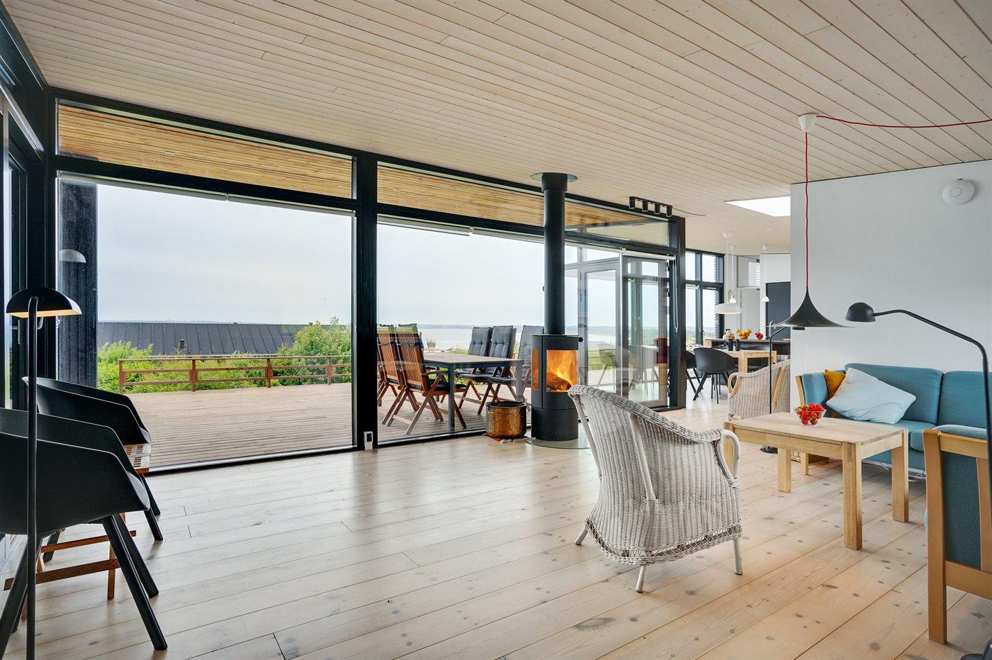 Flot og nyere sommerhus (2020) beliggende ganske eminent - højt hævet over havet med 180 graders panoramaudsigt. Udsigten kan nydes fra de fleste rum i huset og fra den fantastiske og til dels overdækkede terrasse - en bedre udsigt er svært at finde. Huset ligger i et roligt og naturskønt område - kun ca. 300 m fra den gode badestrand. Sommerhuset, som fremstår lyst og moderne, er godt indrettet med plads til både én eller to familier. På terrassen findes et skønt vildmarksbad, som kan benyttes hele året og hvorfra den fantastiske udsigt også kan nydes.