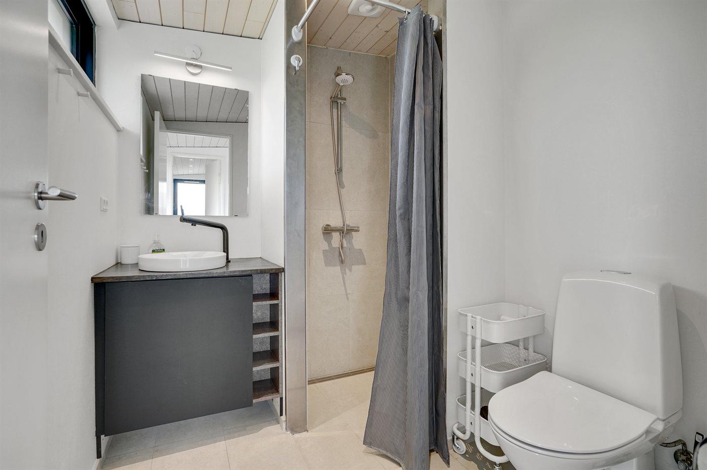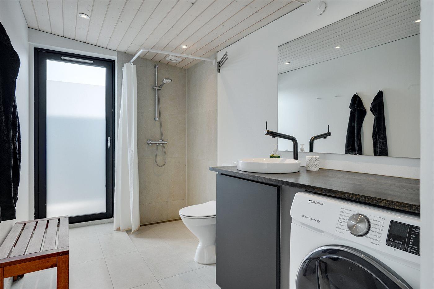 Der er 2 badeværelser med bruseniche og 2 toiletter. Der er gulvvarme på 2 badeværelser.